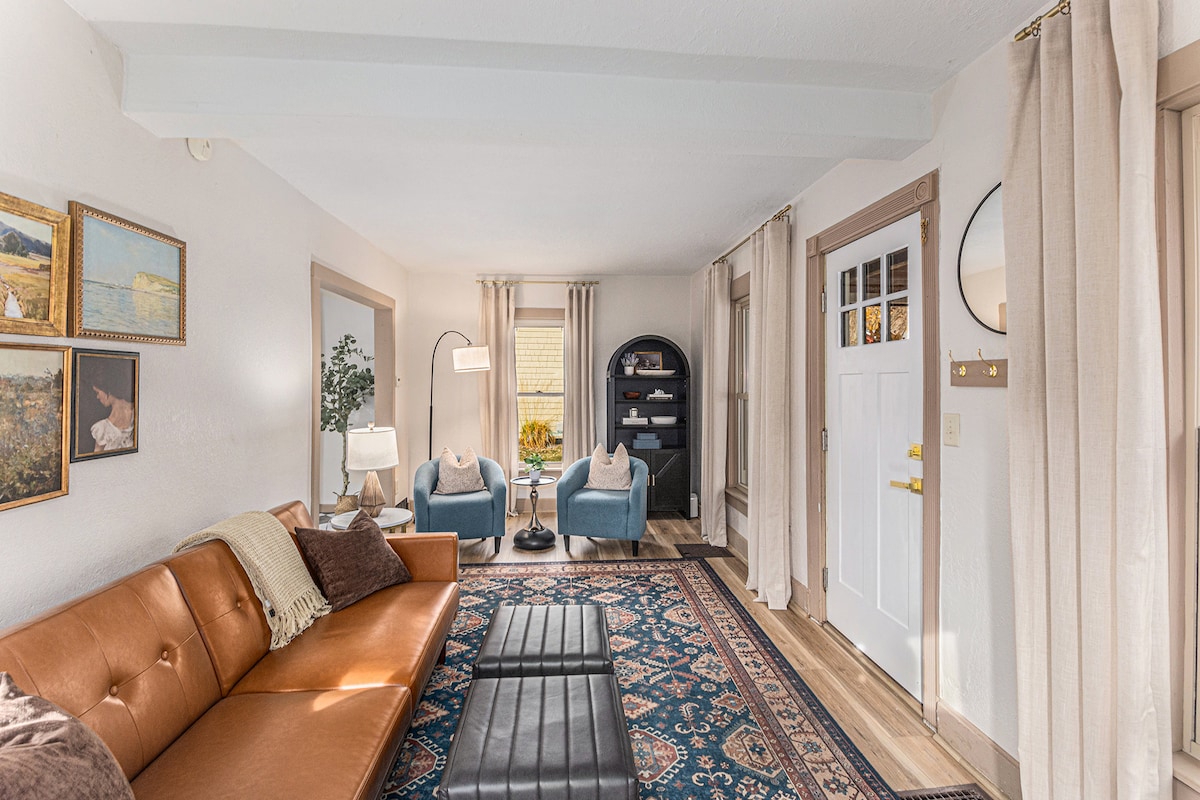 Come and relax in this beautifully renovated and brand-new loft apartment. This high-end, 2BD/1BTH unit has tall ceilings, huge windows, hardwood floors, custom cabinetry, quartz countertops, high-end appliances and furniture, and a walk-in shower. This loft-style apartment was completely renovated in 2021. The character of this 100+ year-old building remains, yet every detail has been redone and reworked to create a beautifully modern unit in the center of downtown Mason.