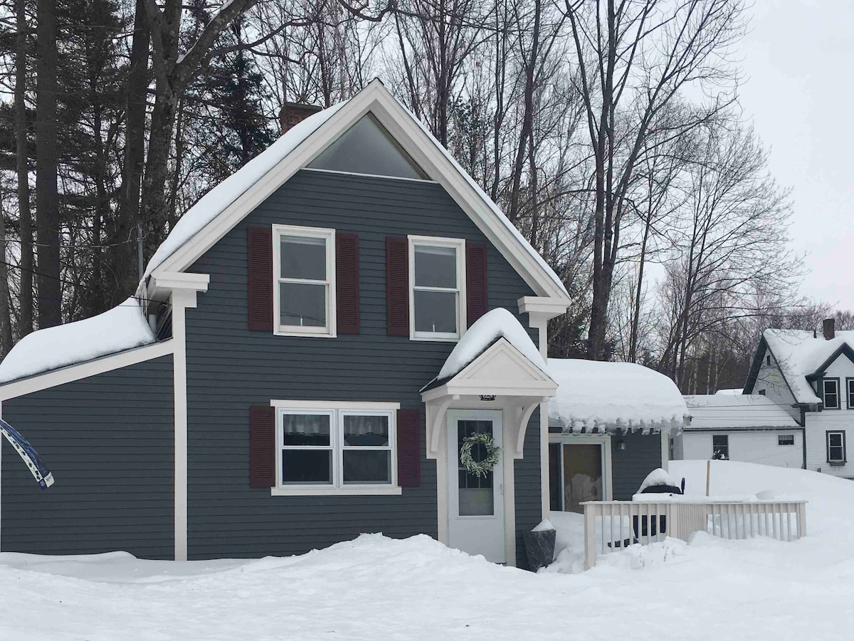 This rustic north country cabin offers 2 bedrooms and 1 bath for up to 4 guests. It has been renovated with comfortable beds and pillows, new appliances, a toasty pellet stove, a beautiful 75" TV with soundbar and subwoofer for movie nights, ample parking. It's located 9 minutes south of downtown Littleton and 11 minutes north of Cannon Mountain. Whether you're visiting for winter sports, leaf watching, mountaineering, or Polly's Pancakes, we're close to the action.