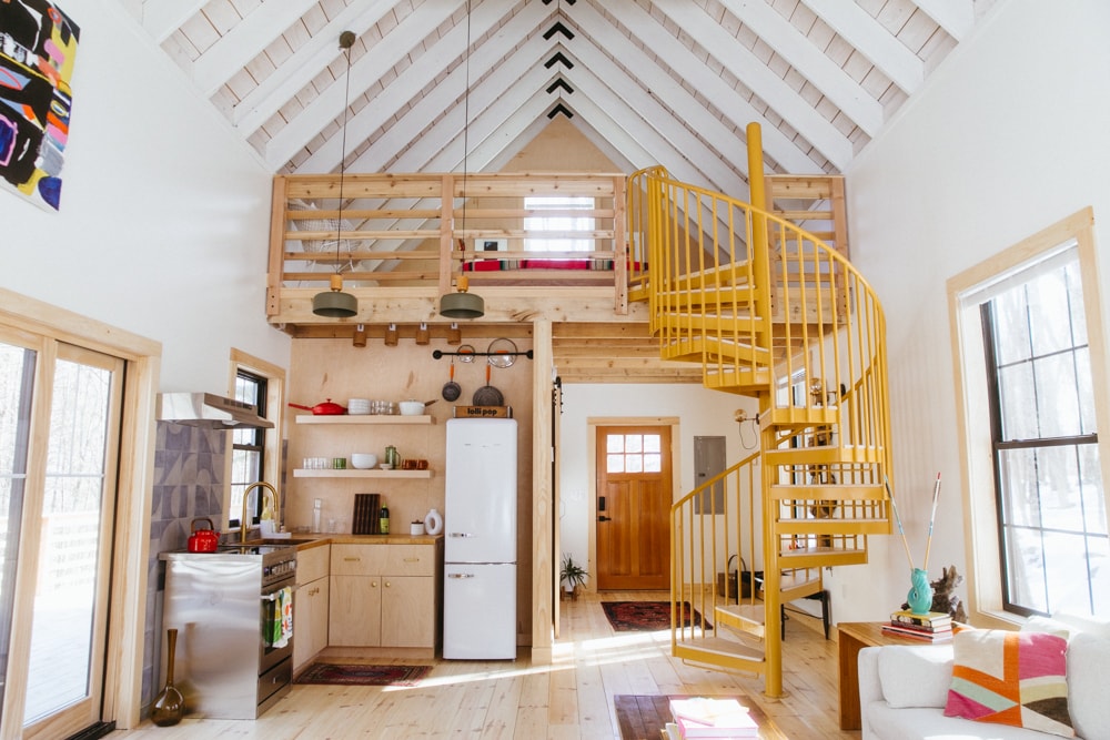 We built the Wren Cabin to be a serene space filled with light and art and with lots of cozy details. Lofted ceilings, a spiral staircase and large open concept with lofted bedroom. The cabin also has a gorgeous wood-fired sauna for those colder days. Wren cabin has a large wraparound deck for relaxing and an outdoor fire pit, as well as shared access to Adams Pond. The space is modern Scandinavian, light and aery, and filled with thoughtful details.