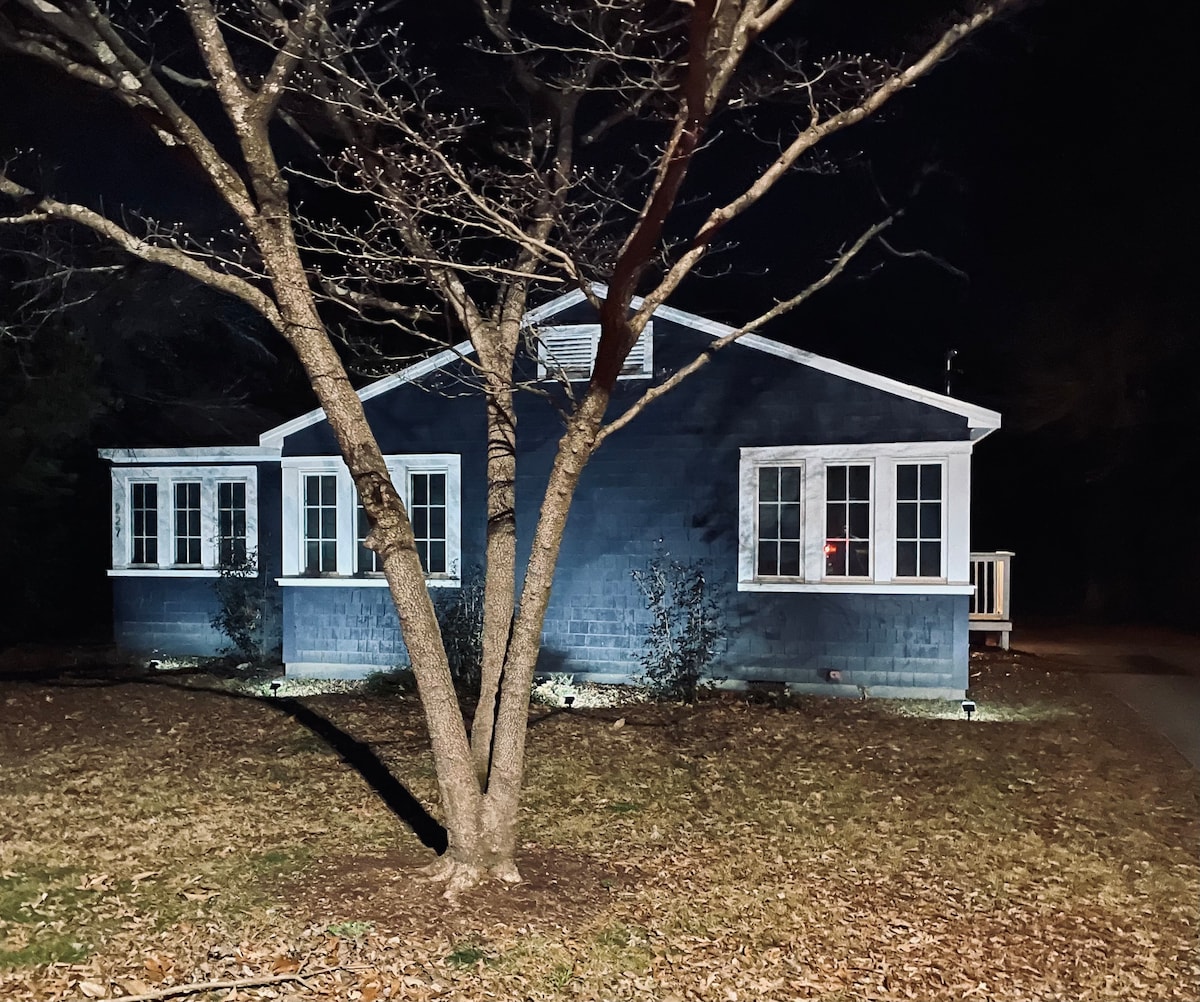 Wonderful cedar cottage with quaint front porch and beautiful private back yard. Quiet street that has sidewalks and is two blocks from the local university and downtown. Rooms are furnished with brand new beds and linens. Kitchen is up to date with stove, refrigerator and dishwasher. Bathroom has been totally remodeled and also includes new rain shower head. Wifi is available inside the home and also on the 55" TV in the main living room. You will enjoy your stay in our little cottage!