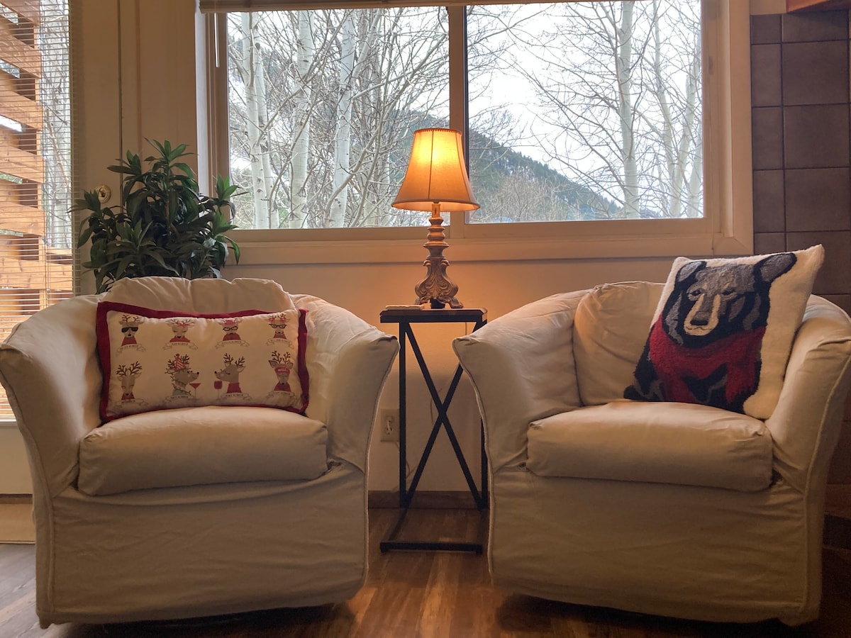 This condo is located truly downtown Jackson Hole, a short walk from so many restaurants, shops, and music venues. Just 3 1/2 blocks from the famous Town Square! While extremely convenient, it is also very quiet and private, tucked off the main road with a shared lawn overlooking Flat Creek. A beautiful setting close to everything! This property is permitted through Town of Jackson for Short Term Rental, License #7286.