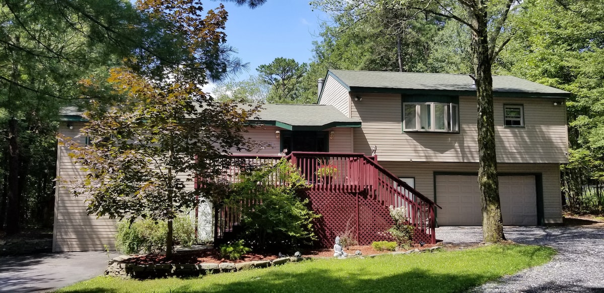 This comfortable home with a fully fenced yard is located in the heart of the Pocono Mountains. It is minutes from Camelback Mountain, The Crossings Premium Outlets, the Pocono Raceway, indoor and outdoor water parks, the Appalachian Trail, and some of Pennsylvania's best fishing and hunting. The property features a 1/3 acre fully fenced yard with deck access including a smaller fenced area for letting dogs out in a more contained space than the larger fenced yard. The house is pet friendly.