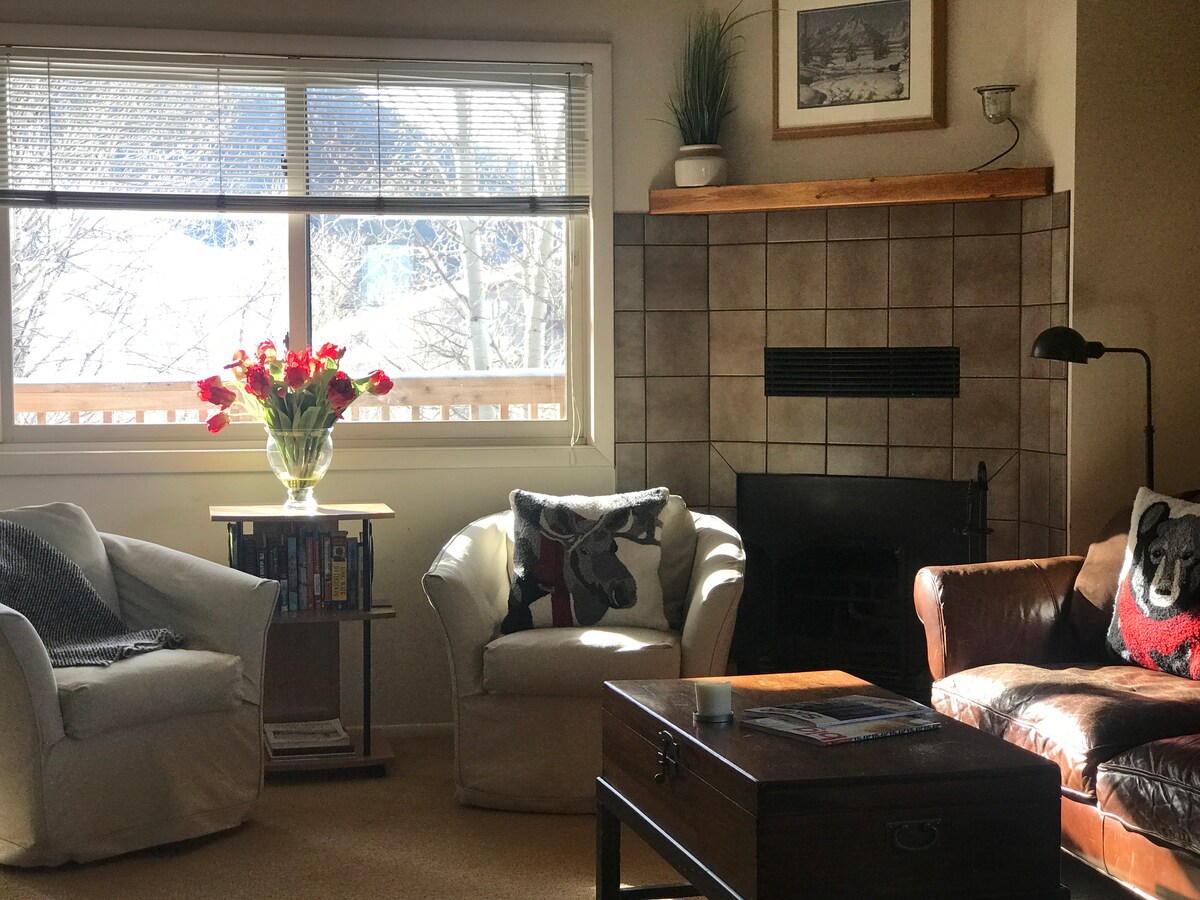 Our place is located at Snow King Resort with The Rafferty Lift just two short blocks away. New carpet in bedrooms Dec. '24. Stroll a few blocks in the other direction to reach the heart of downtown. The arts and culture district, restaurants and shopping are all within walking distance. Gateway to Grand Teton and Yellowstone. Two wonderful parks are each a block away complete with climbing walls, coaster, mini golf, hiking trails, water features, and playground equip.