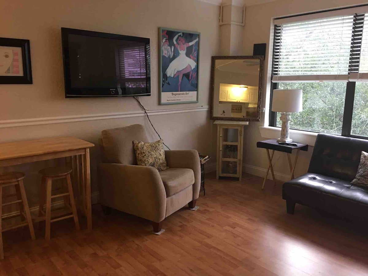 Stunning 1BR/1BA apartment centrally location and perfect for visits to Mayo Clinic, beaches, and St. Johns Town Center. Enjoy a private, quiet atmosphere with modern amenities, luxe furnishings, a fully equipped kitchen, dining area, dedicated workspace with WiFi, pool, and 24-hour gym access.