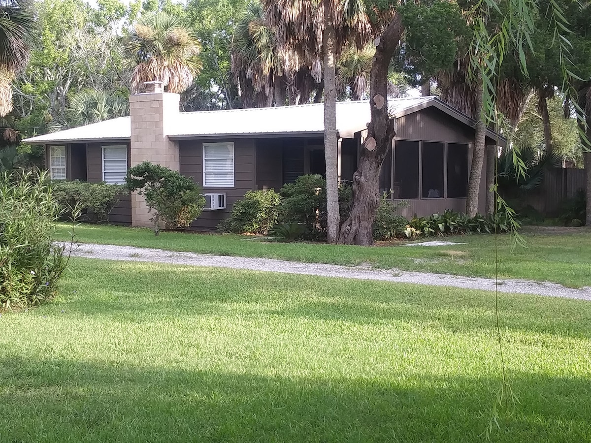 Renovated Old Florida cabin within walking distance of restaurants, boat ramp 2 miles, cruise ship terminal 10 miles, Jax Zoo 15 miles, Amelia Island shops 17 miles, 9 mi to Boneyard Beach. This cabin has a king bed in private bedroom and 2 single rollaways for additional guests. Furnished kitchen w/full size refrigerator. Screened porch, and bike path to Huguenot Park, a drive-on beach park 1+ miles.