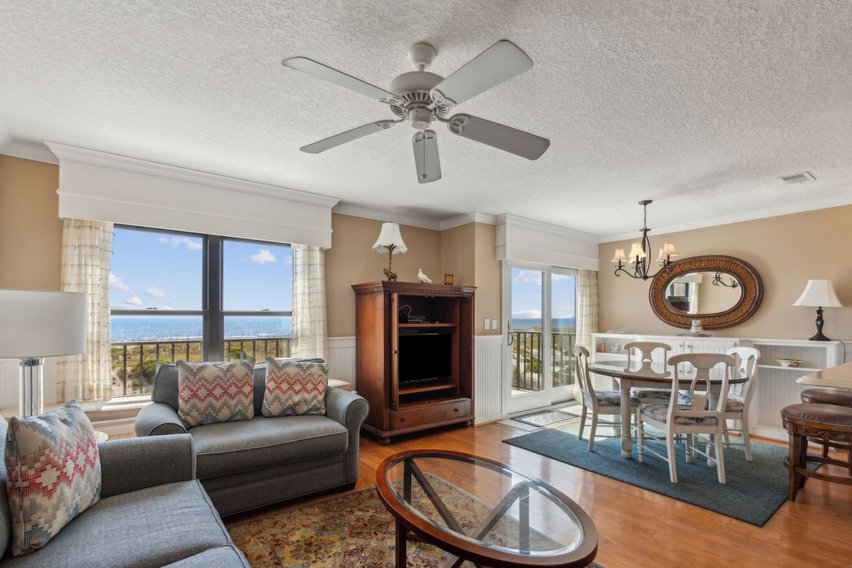 Come and make treasured memories at the ocean front, Top Shelf Beach Condo located on 7th (top) floor at Amelia By the Sea! Wake up to beautiful panoramic sunrises, fish from the private pier, stroll the beach or simply grab a chair & chill. The ocean front pool is irresistibly refreshing, the only suit required on Amelia Island is your bathing suit! We look forward to sharing our island sanctuary with you. Permit #BTR-000681-2022