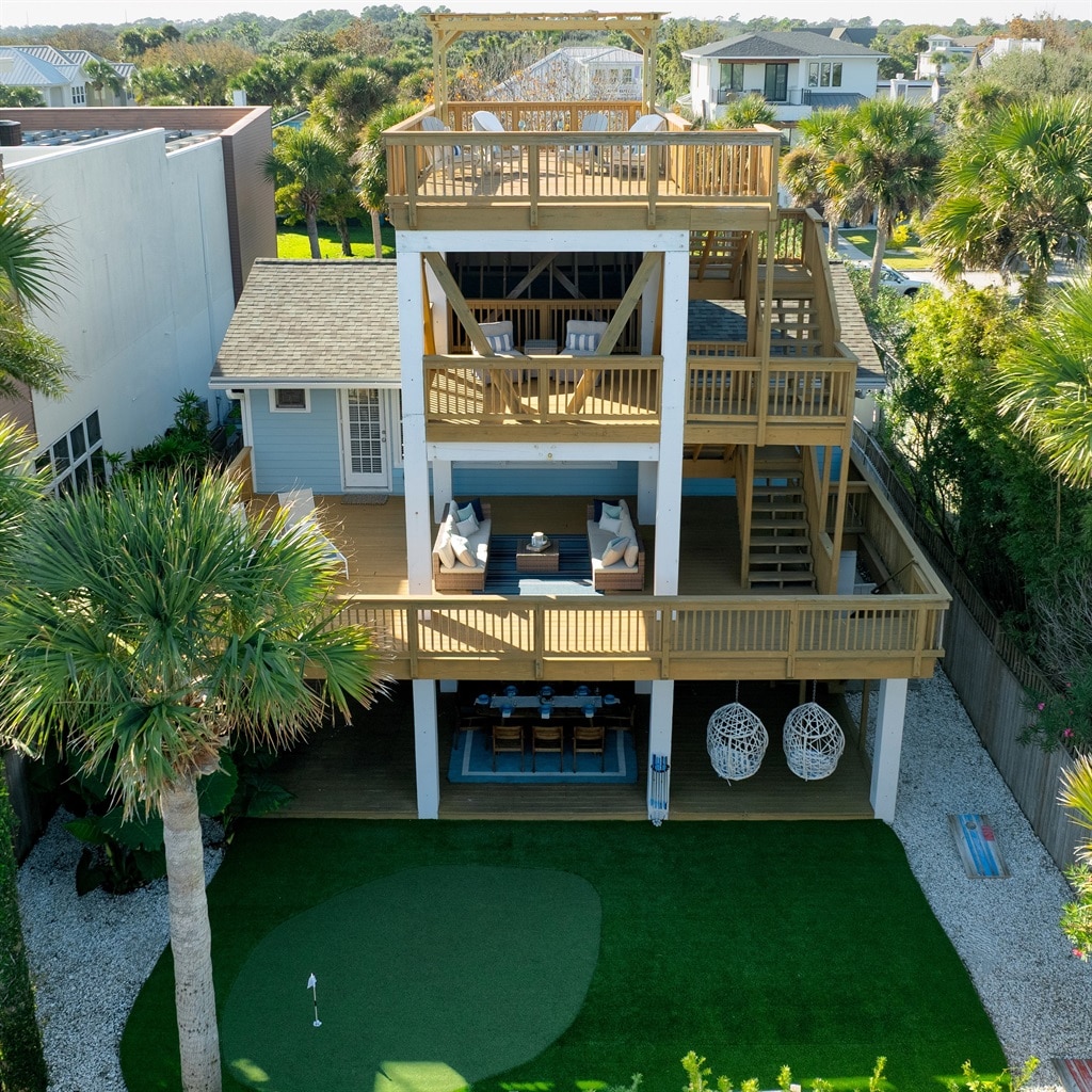 Welcome to VistaMar, a newly redesigned beach retreat in the heart of Jacksonville Beach and Ponte Vedra. This 3,000+ sq. ft. retreat was made for easy living and lasting memories, with rooftop ocean views, a private putting green, and a location just one block from the beach and prestigious Ponte Vedra Boulevard. Whether you’re here for surf, sunshine, or a peaceful recharge, VistaMar offers it all—four levels of outdoor living, modern interiors, and everything you need for a high-comfort stay.