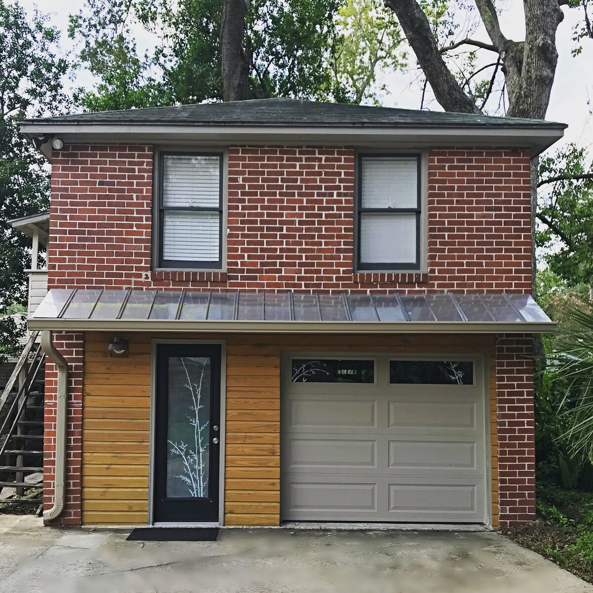 This two story loft garage is detached and is set in the back of the property 45 feet from the main house. The first floor has the kitchen and living space, then walk up the spiral staircase to the bedroom with cathedral ceiling with track lights and ensuite bathroom. I love dogs and allow them with permission first. No pets without prior approval (pet fee is min $50 per stay or $10 per day which ever is greater) My location is a short walk to Starbucks and other restaurants.