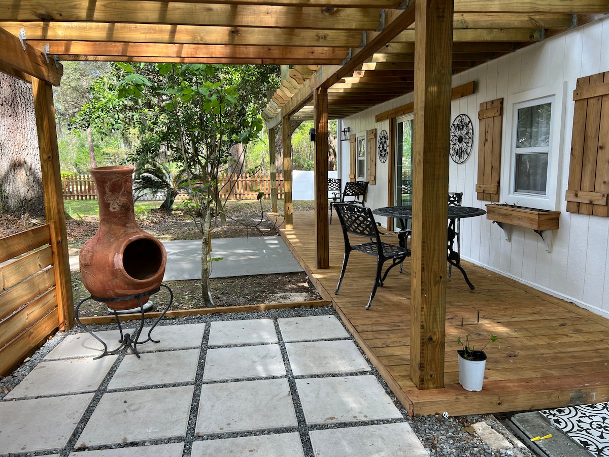 Good vibes only at La Casita. Stylish, peaceful & private. When it comes to choosing your home away from home- the details matter. Kitchen is equipped with fridge, microwave, air fryer and hot plate. Coffee, hand soap, dish detergent, shampoo and conditioner provided. The bed is full sized. Enclosed side yard. Excellent central location. 10 minutes to the highway, St. John’s Town Center & UNF. 20 minutes to the beaches, downtown & Mayo. No smoking is permitted inside.
