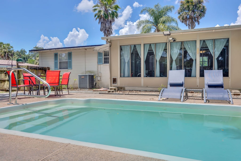 Beautiful pool home and private backyard oasis. This walkable neighborhood is quiet and popular with professionals and families. It's a short walk from many restaurants, bars, and entertainment. This home includes a heated* saltwater pool, pool table, huge covered lanai, fire pit, and campground-style grill. Enjoy this oasis, surrounded by tropical landscaping and pond. We are glad to offer a military/first responder discount of 10% per day up to $100 for your stay upon request w/ valid id.