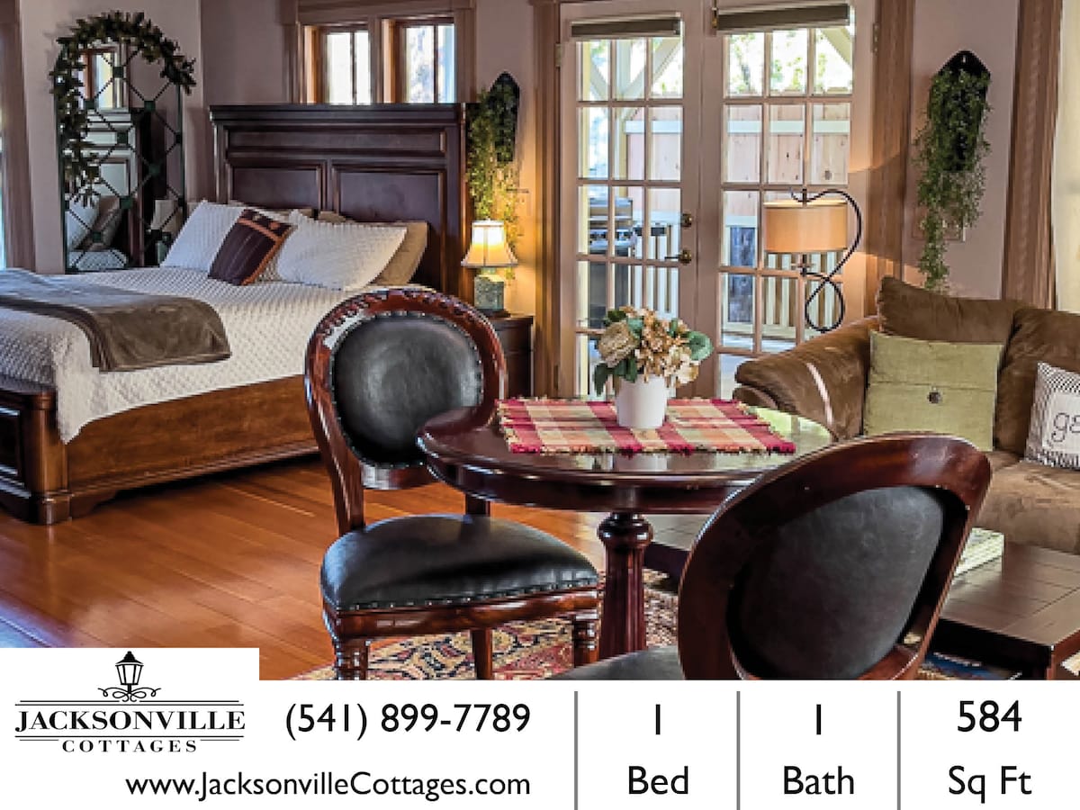The Britt Bungalow is an Award Winning boutique style stay, created and designed by the owner and host. This is a private 2 bed/2 bath cottage with 17' ceilings, fresh flower’s throughout, #1 rated Dreamcloud mattress in Master, fireplaced open living room with an abundance of natural light throughout. You will want for nothing during your stay. It is in the historical heart of Jacksonville Oregon just 2 blocks from the trolly, all the best restaurants, boutiques, Britt Gardens, and much more