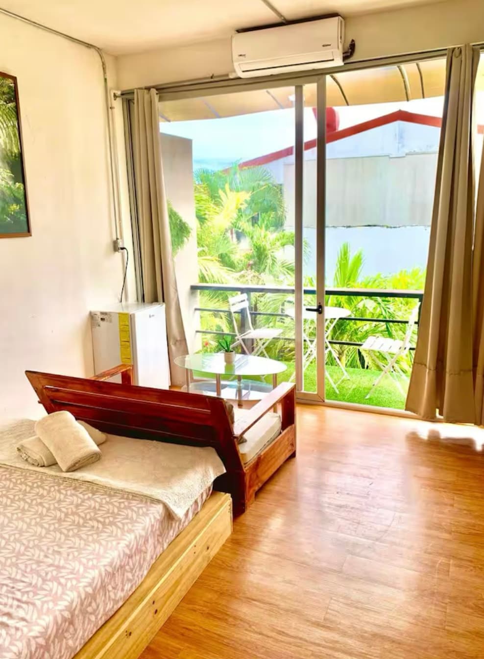 Acogedor espacio de un solo ambiente en un tercer piso, a solo 75m de la playa en Jacó, en zona tranquila y céntrica. Desde el balcón disfruta una pequeña vista al mar y la brisa tropical. Ideal para parejas, amigos o amantes de la playa y el surf. Cuenta con cama King, cocina equipada, comedor, baño amplio con agua caliente, A/C, TV con cable e internet. Estarás a pasos del mar y al mismo tiempo cerca de restaurantes, tiendas, y todo lo que ofrece Jaco sin perder la calma que buscas. ✨🌊