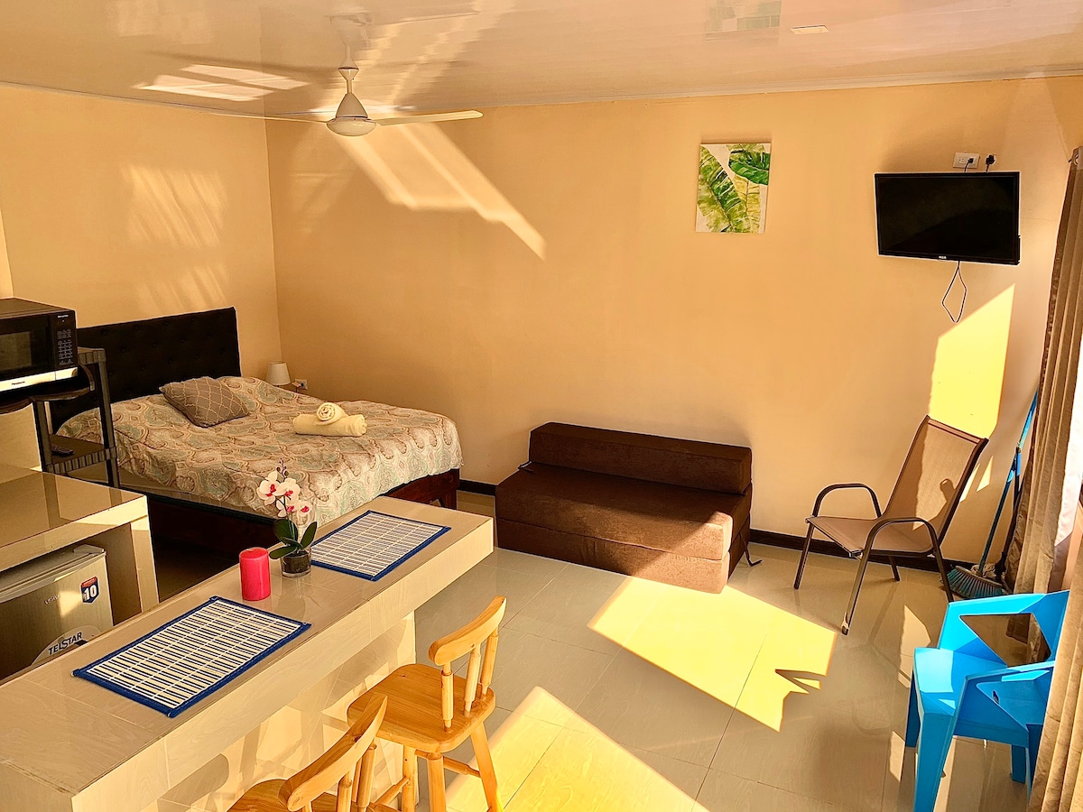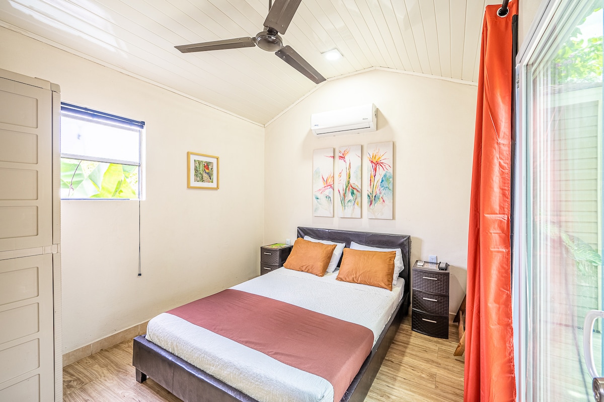 Nous serons heureux de vous accueillir dans ce bungalow avec uniquement des moustiquaires aux fenêtres pour vous protéger des insectes et des persiennes pour l'intimité. L'endroit est idéal pour se reposer, c’est pour cela que la musique forte, les fêtes et les soirées ne sont pas autorisées. Petit déjeuner inclus, et petit déjeuner vegan et sans gluten possibles uniquement sur commande à la réservation. Navette de l'aéroport de SJ à Jaco pour 95$ et pour tout autre trajet, nous consulter.