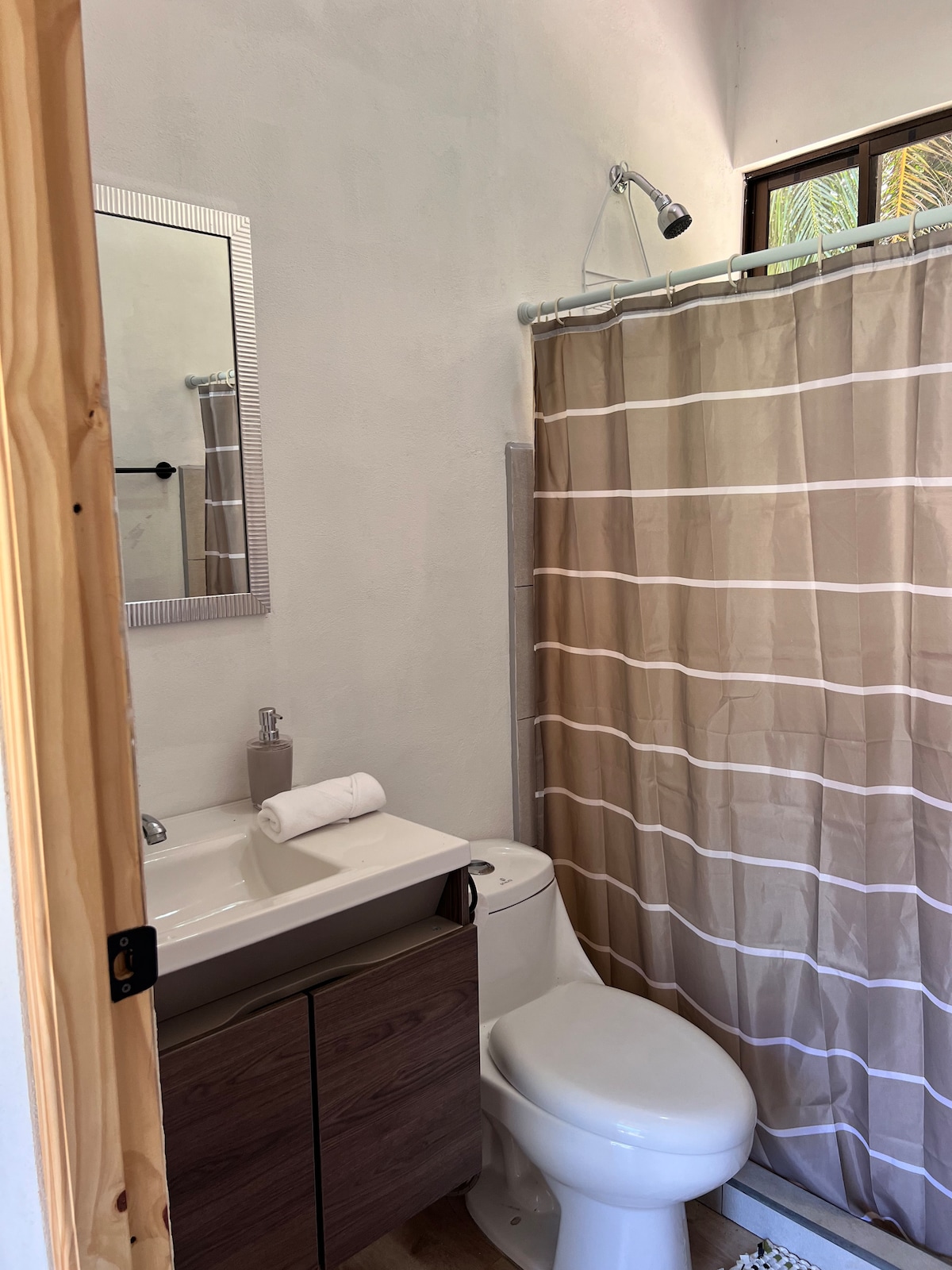 A brand-new home in beautiful Jaco Beach offering the perfect blend of nature and relaxation. With beachfront access you can soak up the sun or hit the waves for a surf adventure at any time. Fully equipped kitchen so that you can feel like you’re home. We have strong WIFI available for all guests and AC in each room, comfortable linen, and there is a communal outdoor area which has a BBQ, pool, jacuzzi, and an open-air shower and bathroom.