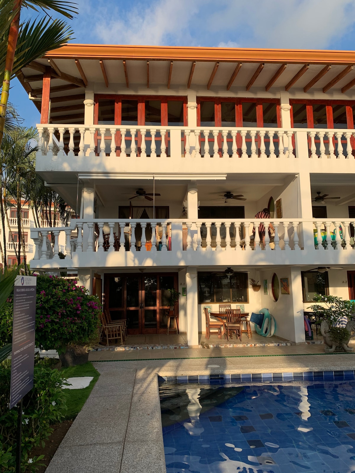 Acogedor apartamento , con espectaculares vistas al mar y un sendero directo a Playa Blanca .Ubicado en el tercer piso, ( sin ascensor)donde podrá disfrutar del mar en armonía con la naturaleza, los mejores atardeceres desde nuestra piscina infinita, en una comunidad familiar ,tranquila y segura para vivir unas vacaciones inolvidables. Acceso al Club de Playa , mediante un fee para visitar el mariposario , tour de pájaros, deportes acuáticos , restaurantes . Camina 2 minutos a la Playa