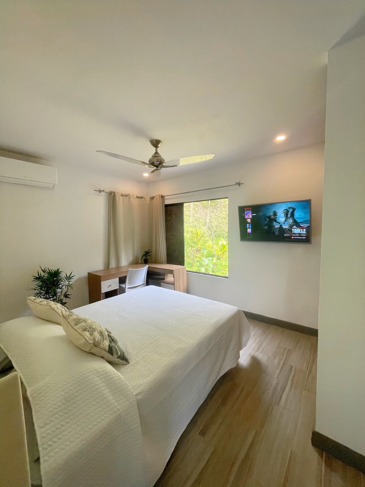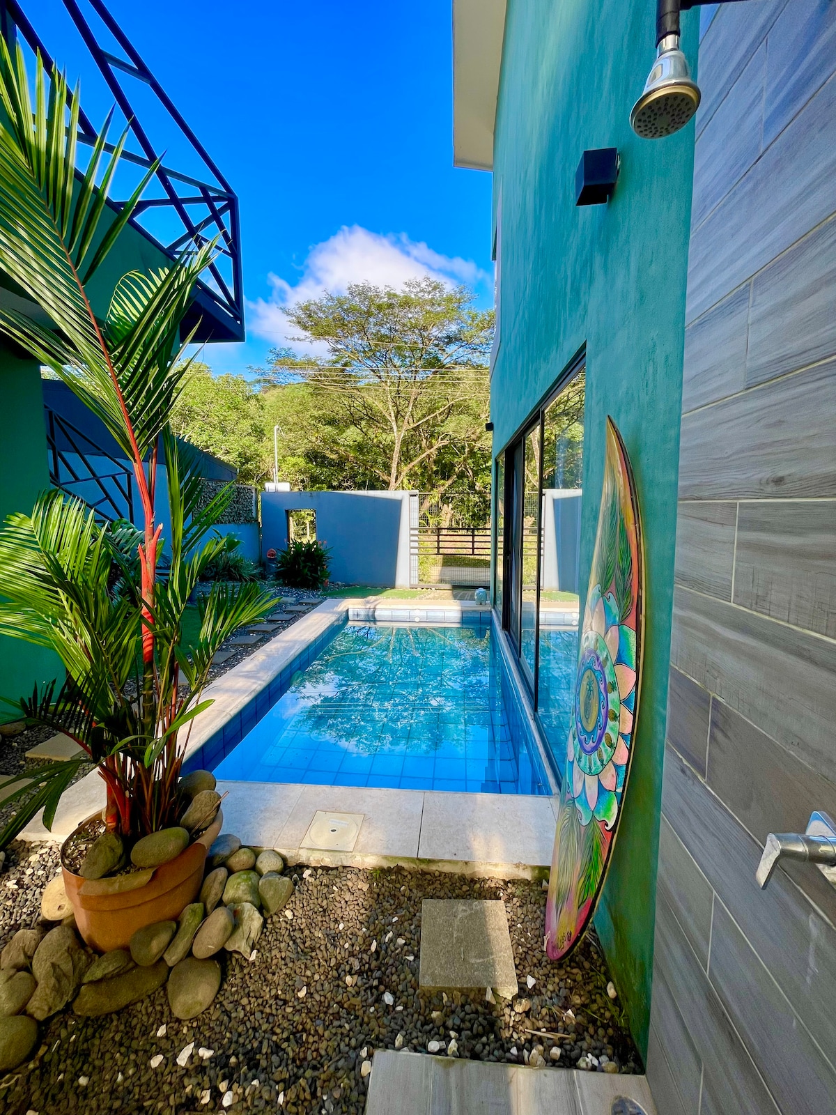 Beautiful & Modern 3 bedroom townhome is close to everything. 2 bedrooms, each with a queen size bed & 3rd bedroom with a double size bed & a single size bed. There is dedicated high speed WiFi & cable television. The beach is a short walk from the house. This complex has a beautiful pool and jacuzzi. We are located on the quite end of the Main Street in Jaco just outside the hustle & bustle of town. Central Jaco has countless restaurants & shops which is located walking distance from the house