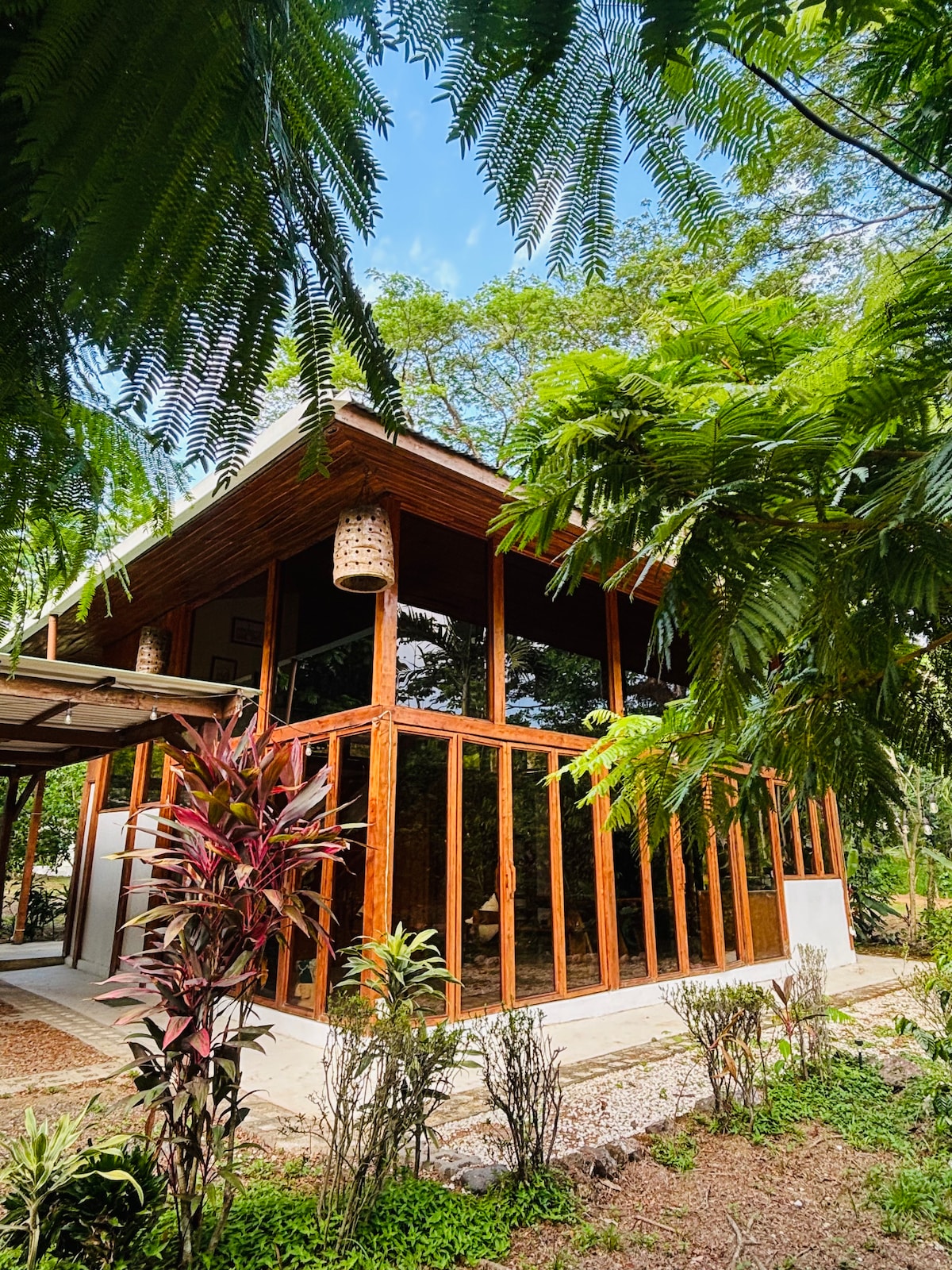 Unique Balinese inspired treehouse overlooking a seasonal river, butterfly garden and tropical fruit orchard. Built with locally sourced lumber that was mostly milled on the property and complemented with keepsakes and carved wooden accents collected while exploring Indonesia and Thailand. This is a birder’s paradise with daily visits of scarlet macaws, parrots and toucans. Located a short drive from world class surfing , oceanfront restaurants and nightlife in playa Hermosa and playa Jaco.