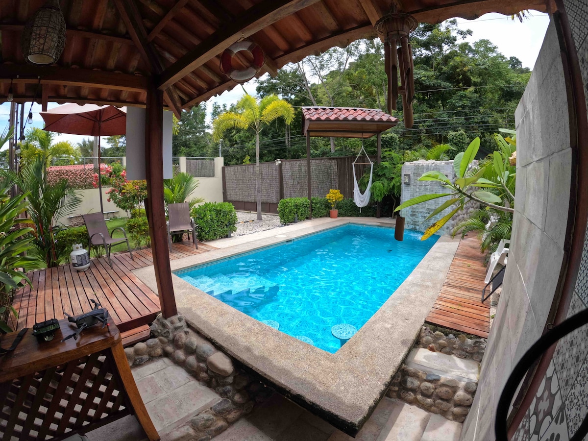 A tan solo 5 minutos de playa jaco y herradura. Lugar privado , exclusivo y tranquilo. Hasta para 16 personas. Precio es para 8 personas, persona adicional paga $40 hasta máximo de 16 personas. Se permiten hacer eventos o similares siempre que se mantenga el orden y ruido, después de las 11pm se debe apagar música y mantener ruido.