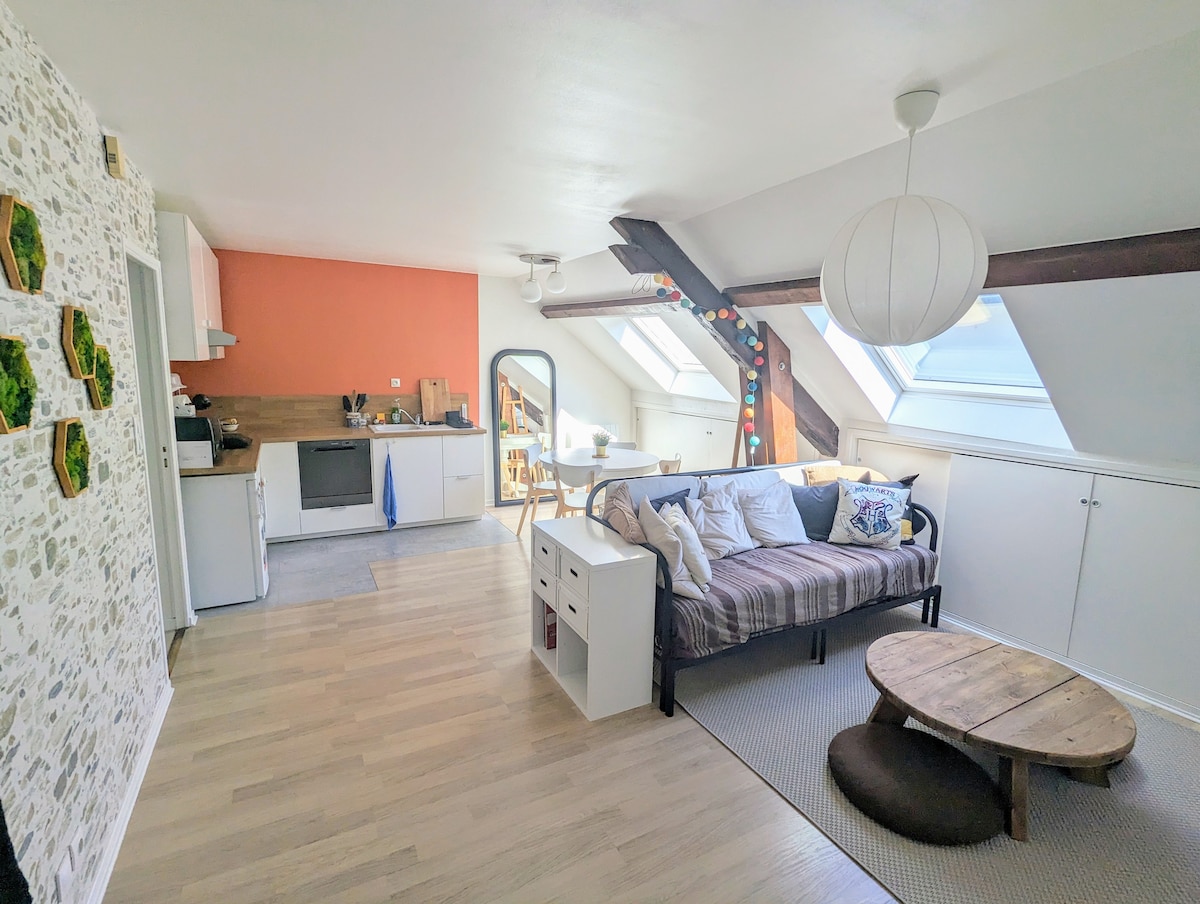 Bienvenue dans un lieu chargé d’histoire, perché au dernier étage d’un immeuble du XVIe siècle, sur la célèbre Place Saint-Léger. Après avoir gravi les cinq étages de l’escalier en pierre, vous accédez à un appartement baigné de lumière, grâce à ses 9 fenêtres offrant une vue imprenable sur les toits de Chambéry, le clocheton, le château et les montagnes environnantes. Un logement plein de charme, calme et authentique, idéal pour découvrir la ville à pied et profiter d’un cadre exceptionnel.