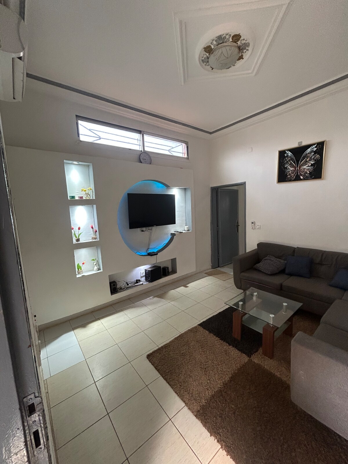 Détendez-vous dans ce logement calme et élégant,la tranquillité y règne éloignant les bruits extérieurs et les nuisances sonores son élégance se manifeste par une décoration soignée, aux tons neutres et harmonieux, mêlant mobilier contemporain et éléments classiques. Les grandes fenêtres laissent entrer une lumière naturelle douce, accentuée par des rideaux légers.