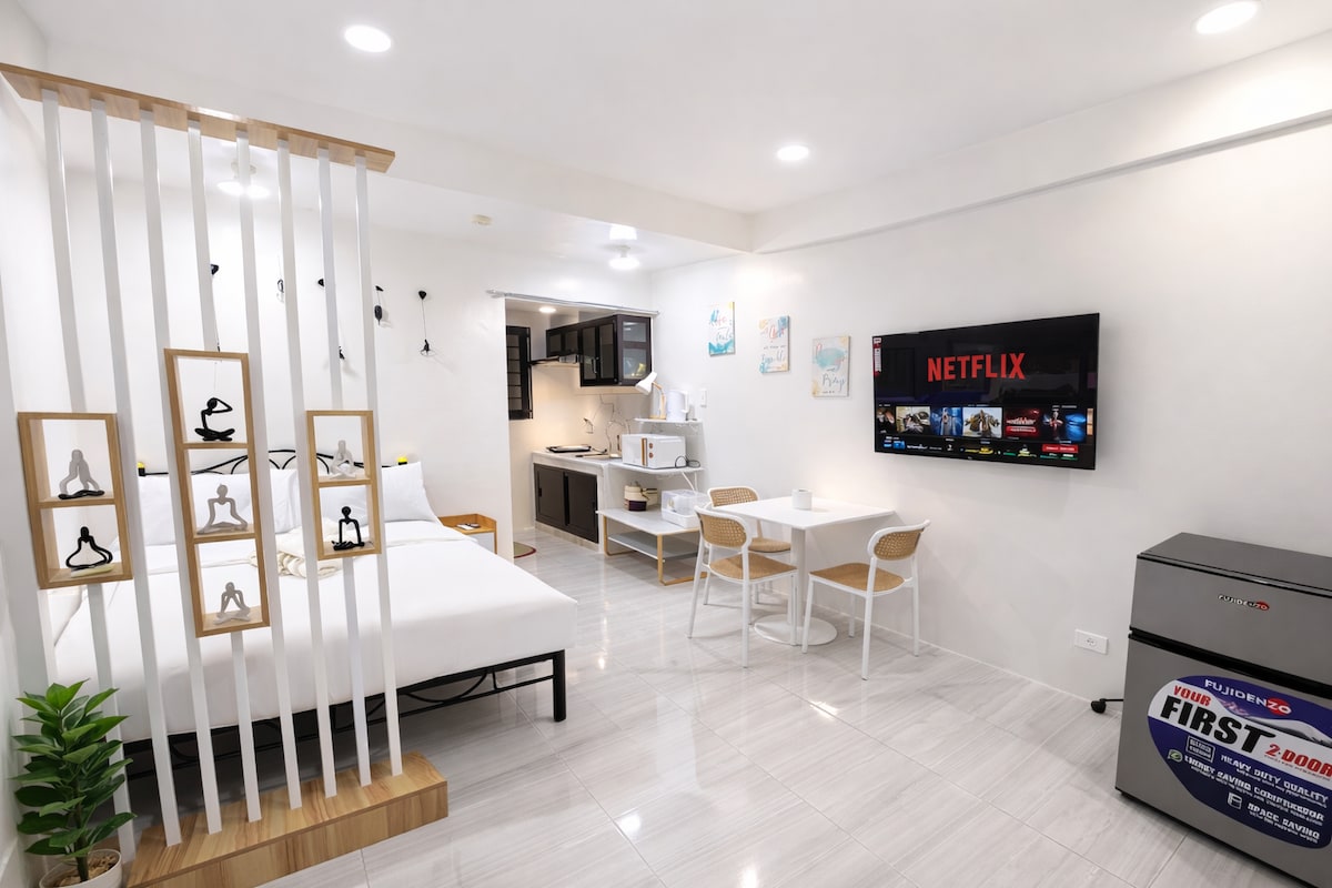Elegant & modern condo-style place one (1) Bedroom unit in Santa Rosa, N.Ecija Equipped with Smart TV w/ Amazon Prime Videos, Premium Cable, Netflix and fully functional kitchen. Blazing Fast Internet Speed using 400Mbps PLDT Fiber Connection. Place is Literally stone's throw away from everything...from Schools, Church, Mall and Business establishments..Good for solo, couples & business travelers..Transient guests are welcome.