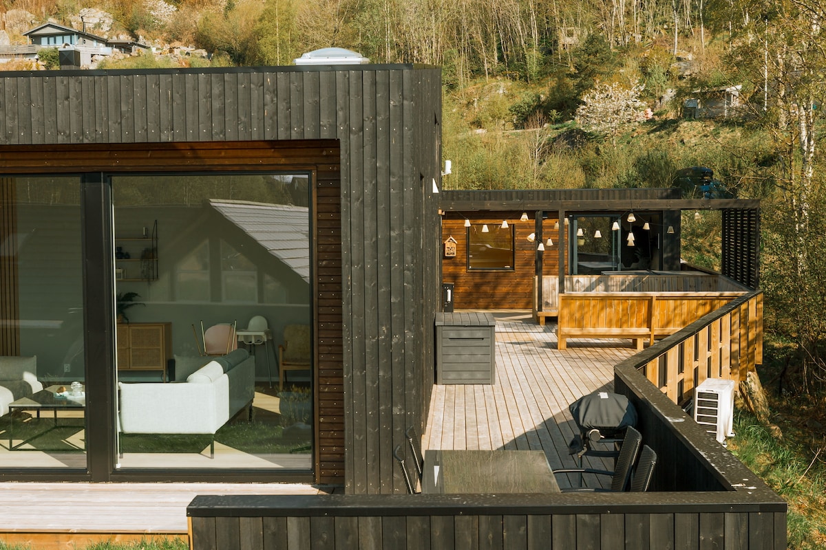 Cozy cabin by the fjord with a view. In the middle of the nature. 15m2 cabin. 15m2 roofed terrace with 4 chairs and table. Outdoor terrace with sun chairs and barbecue grill. Close to beautiful hiking area. Parking nearby. Excellent drinking water from private source. Outdoor kitchen. Incineration toilet and outdoor shower. Beach access Fishing rods Two Kayaks Sauna Two Showers