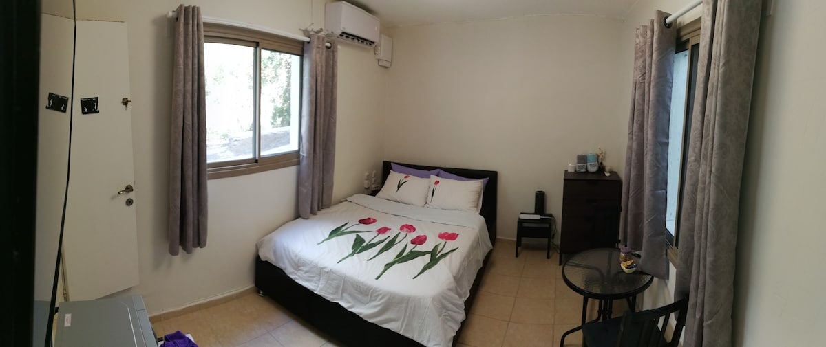 Upon returning home from either Banana beach or Carmel market each 2 min by foot, w/your grocery bags/bathing suits, you enter your seaview apartment, hang your wet things on the balcony, use the outdoor sunshower, or a hot massage shower inside, then after, sip some wine, kick your feet up on the deck or in the studio watching your favorite movies on the HD widescreen. The apartment is in the back side of the building, so the loudest sounds you hear at night are mostly the waves at this level.