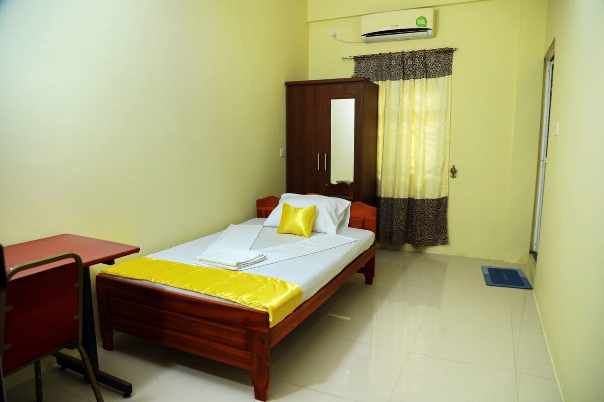 Experience comfort and relaxation in our well-appointed Double Room at Northern Residence Jaffna. Designed for both leisure and business travelers, this stylish room features a comfortable double bed with fresh linens, air conditioning, free WiFi, and an attached private bathroom for a hassle-free stay. tastefully furnished with modern wooden furniture, creating a warm and inviting ambiance. Guests can enjoy ample space, a seating area, and essential amenities to ensure a pleasant stay.