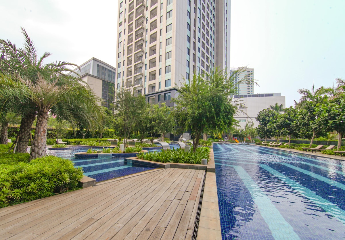 平均评分 4.95 分(满分 5 分),共 20 条评价带泳池景观的Cibubur Transpark公寓
