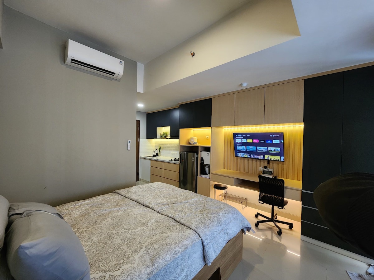 Cozy studio apartment in the heart of Depok, directly connected to Depok Town Square and close to Universitas Indonesia, Margo City, and Depok Baru Train Station for easy access to Jakarta. Furnished with IKEA-inspired furniture, it’s perfect for students, professionals, staycations, or short trips to Depok & Jakarta. Enjoy a comfortable & convenient stay! *This property is best suited for solo travelers, students, or families. We kindly ask that unmarried couples do not book this property.
