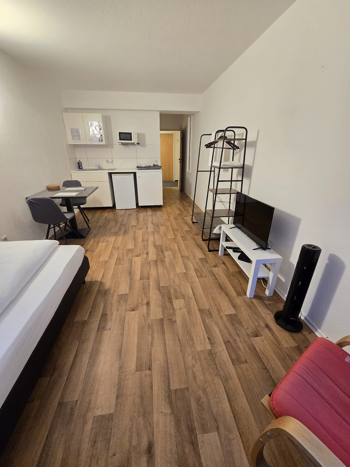 Möchten Sie zentral wohnen und vieles zu Fuß erreichen? Unser möbliertes City-Apartment befindet sich 300m von der Einkaufsstraße entfernt. Das Apartment verfügt über ein eigenes Bad mit Dusche, einer EBK mit Mikrowelle, Herd, Kühlschrank, Kaffeemaschine etc. Sie haben feien WLan-Zugang und einen Flat TV. Der Wohnraum ist mit Bett, Schrank, Eßtisch und Parkettboden ausgestattet.