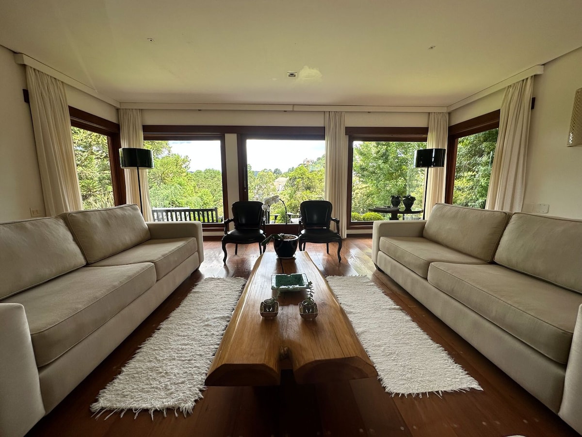 Experience the best of Mantiqueira: safety, comfort, and nature. Nestled in the heart of Mantiqueira's forest and situated in a private condominium, our corten steel house, with expansive windows, is distinguished by its local art and craftsmanship. It accommodates 10 guests, expanding to 24 with adjoining chalets. We provide Wi-Fi, spring water, daily cleaning, and a regional breakfast. Perfect for events, gatherings, and retreats. We offer services from masseurs, chefs, and exclusive tastings