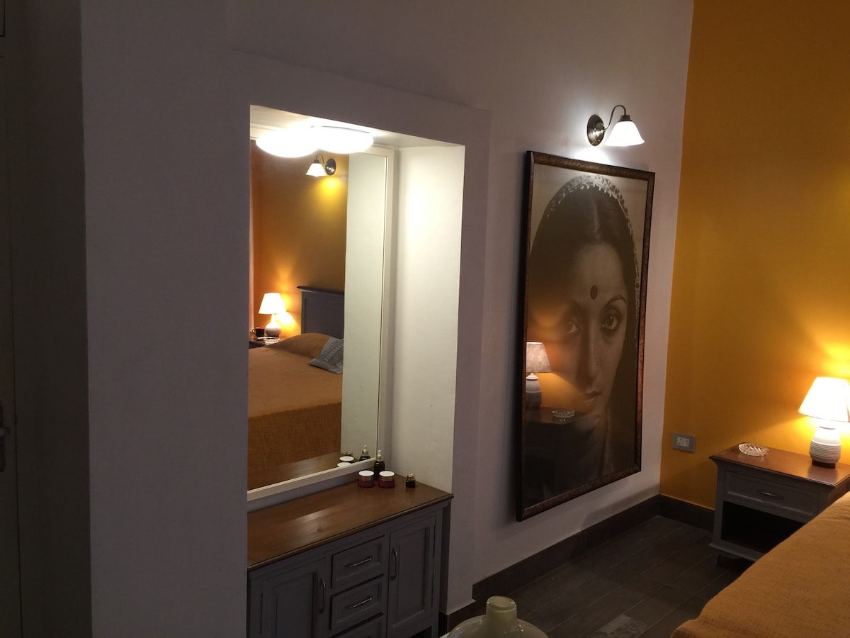 "The Golden Door" is an artistically designed room with an attached bathroom on a private terrace with panoramic views of the Aravali Hills. Ideal for couples, solo travelers, and business professionals, this accommodation seamlessly blends aesthetics and functionality. Its central location grants easy access to major attractions. In essence, "The Golden Door" transcends conventional stays. With its central location, artistic design, and comfort, it provides a simple yet unique stay.