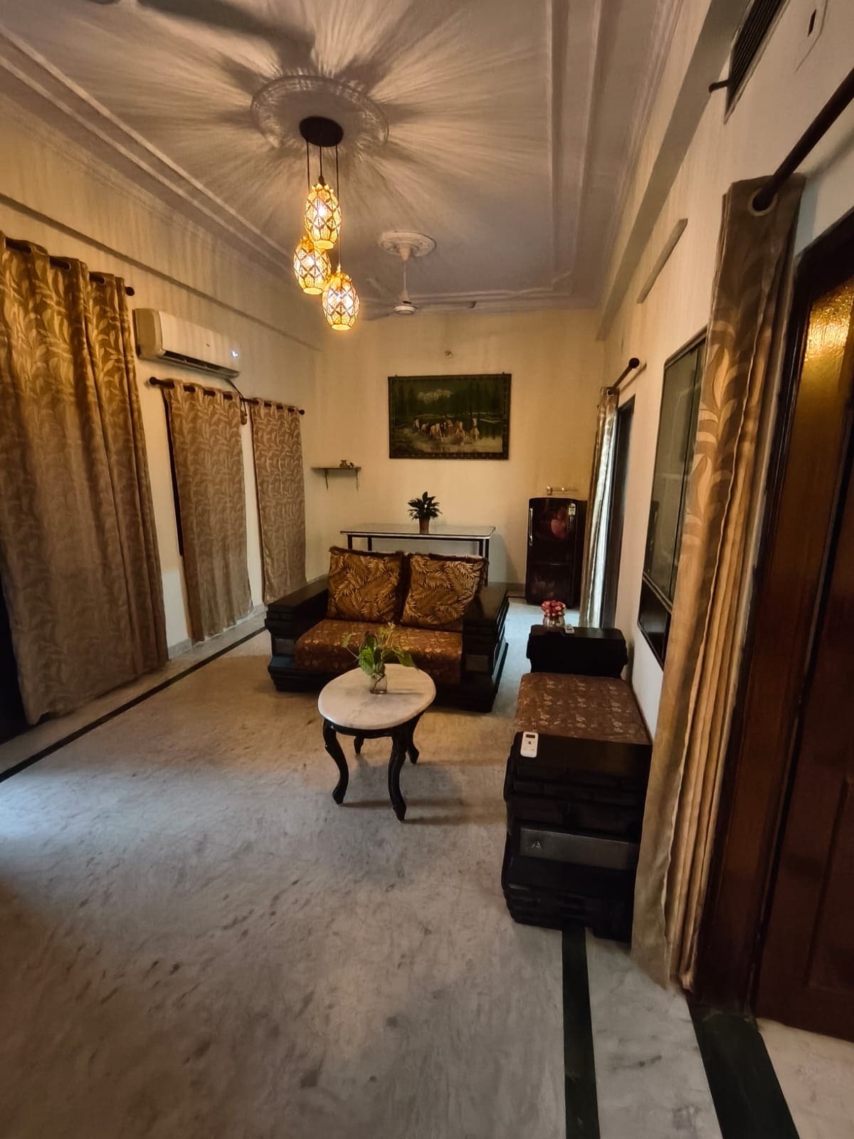 Refer Precautionary Measures for Covid in description below The listing is of the Ground floor of the bungalow which consists of 2 floors and have access to beautiful garden It has separate entry into the building (Main Gate and Driveway is shared) It includes: -3 large rooms (Air Conditioned) -Kitchen -Dining Area -Living Area (Air Conditioned) -Garden -Free Wifi -Electronic Safe Rooms are beautifully furnished with artwork highlighting the local culture and 'Blue Pottery' themed furniture
