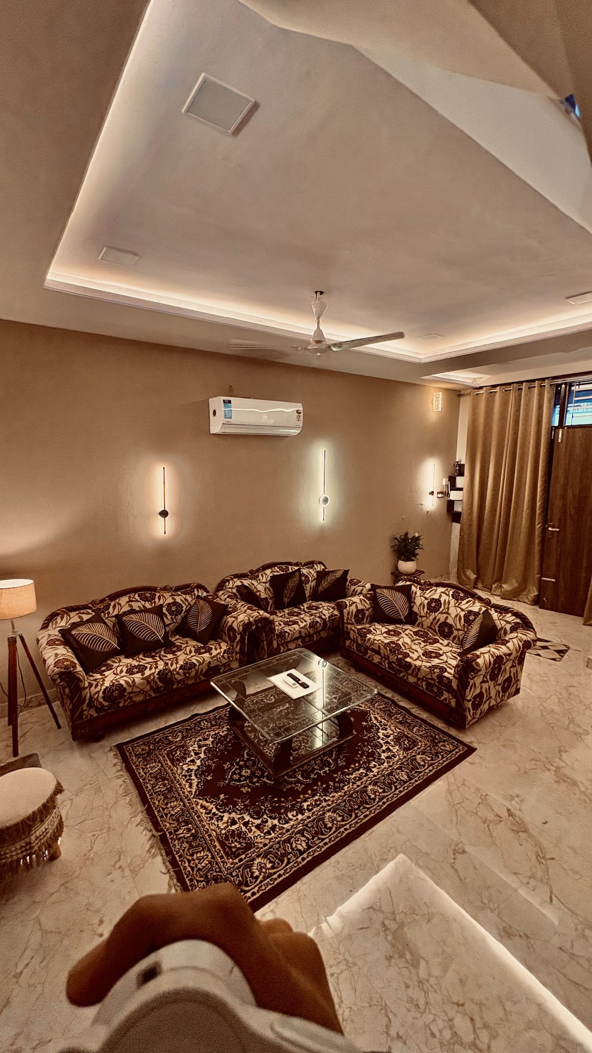 Welcome to our modern duplex! Three cozy bedrooms, each with a private washroom, await you. The kitchen is fully equipped with a refrigerator, microwave, RO water purifier, gas stove, crockery, etc. House also has a 43-inch Android Smart TV, 6-seater dining table, 12-seater sofa, puja room, washing machine. Step outside to two large terraces and a large balcony for fresh air and stunning views. Whether for business or leisure, make yourself at home in this stylish and comfortable Airbnb!