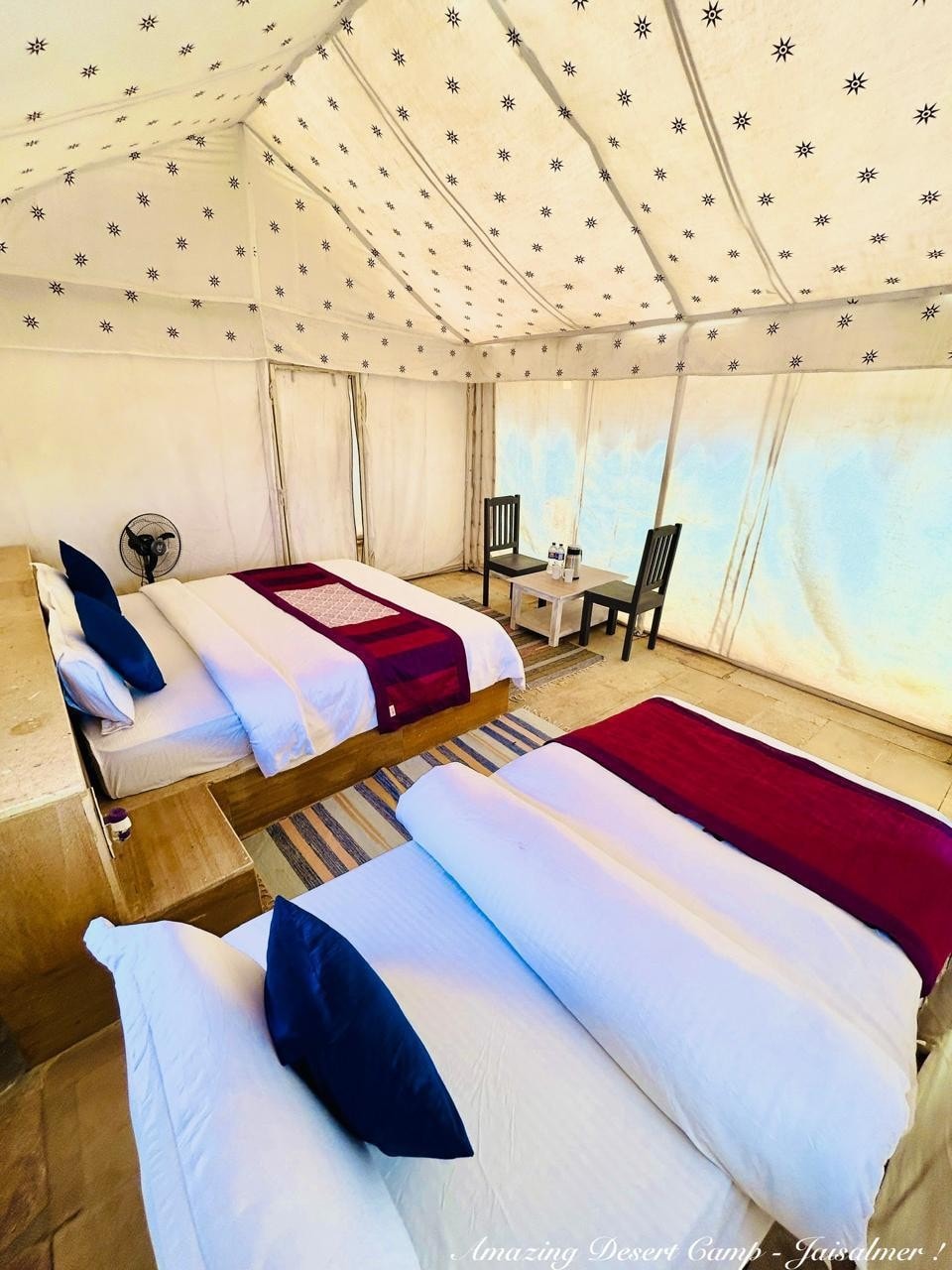 You won’t forget your time in this romantic, memorable place.we arrange pickup from jaisalmer city take you to non touristic dunes where you are going to enjoy camel safari(each person have own camel) sunset stay in open desert evening tea snacks dinner prepared by camel drivers camp fire packaged water morning breakfast then again camel safari drop at point bring back to jaisalmer(fresh and up room in jaisalmer in hotel for each day of leaving and arriving) we also have lugage locker facility.