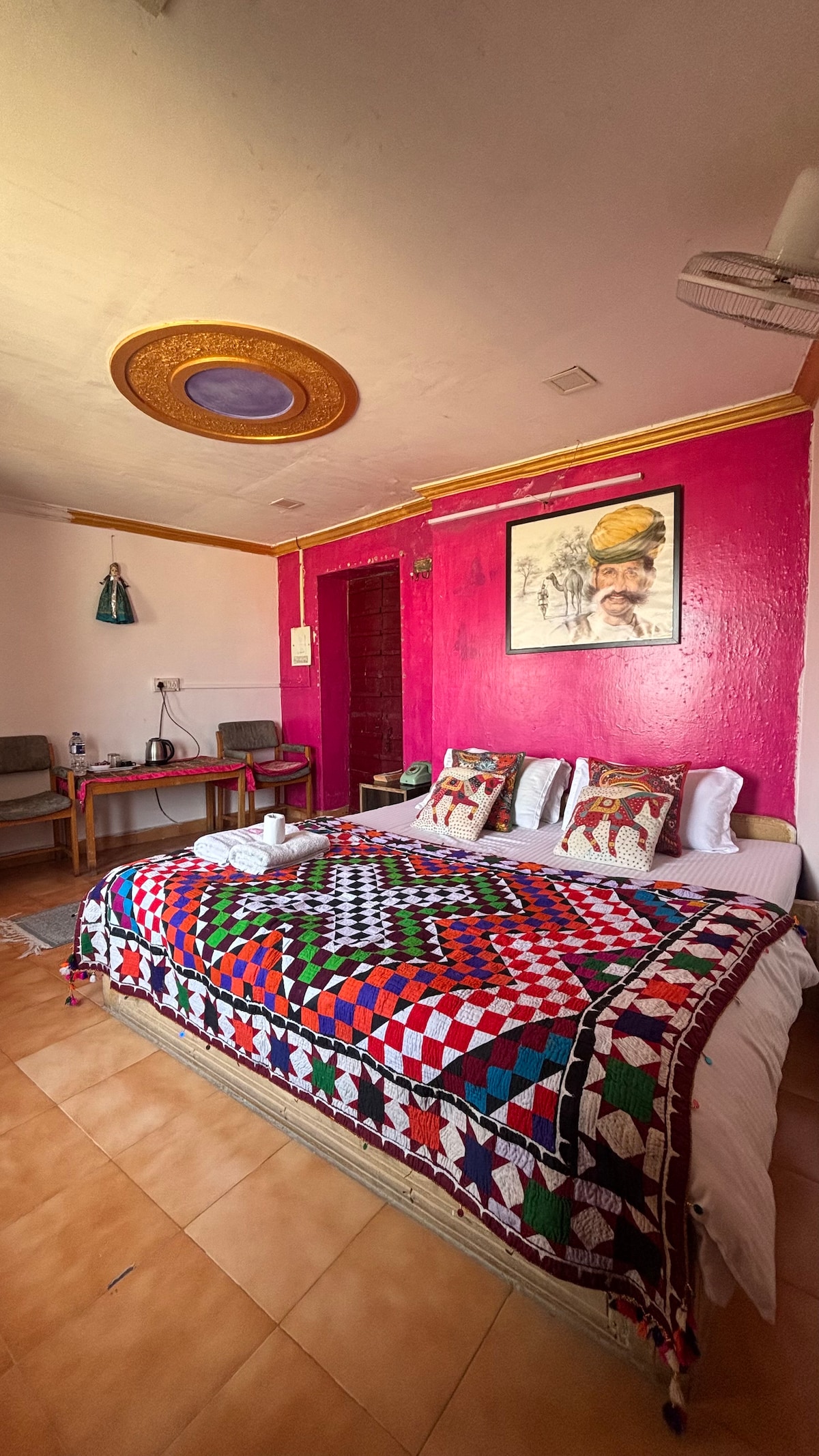 Our place is on top of the fort where you experience best ever sunset sunrise and the room are with all modern facilities comfortable bed with 9”thik bed the room has view of city and sunset sunrise window we also organise camel and jeep non tauristic safari in deep desert give us Chance to make your trip to Jaisalmer memorable and guys any of guest who book here kindly please please share detail of transportation