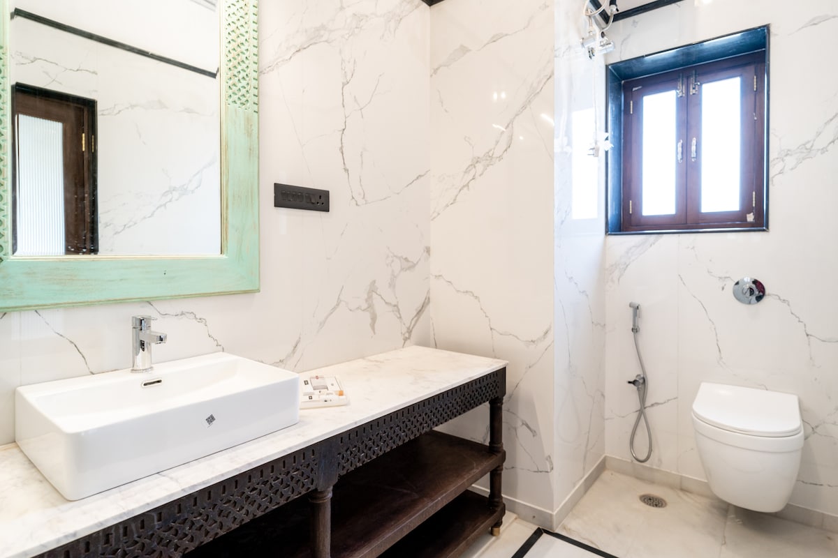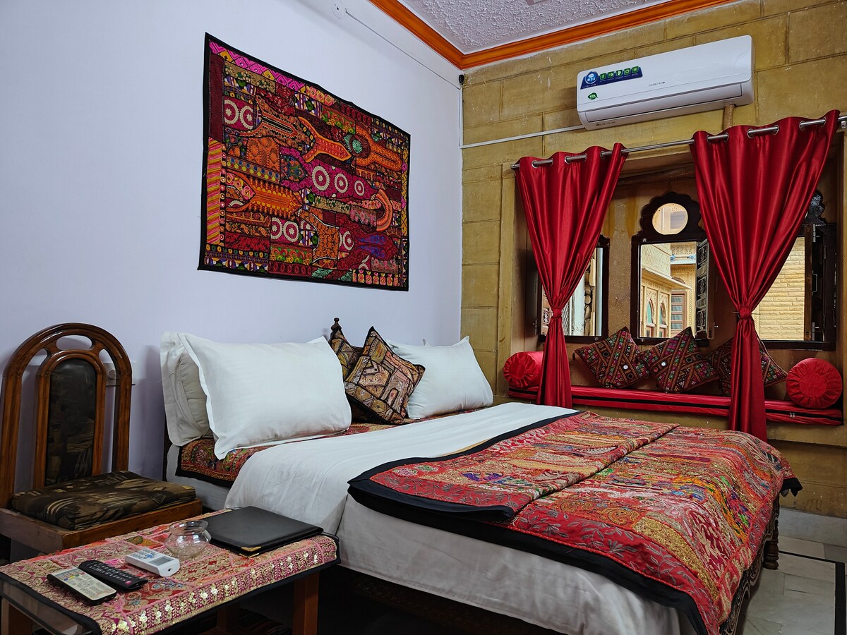 Step into a vibrant and elegantly designed living space that seamlessly blends the grandeur of traditional Rajasthani architecture with the comforts of modern living. The Royal Heritage Living Room is an artistic retreat, designed to immerse you in the timeless charm of Jaisalmer while offering all the amenities you need for a relaxing stay. Perfect for couples, solo travelers, or families, this room is ideal for unwinding after a day of sightseeing or simply soaking in the peaceful vibe.
