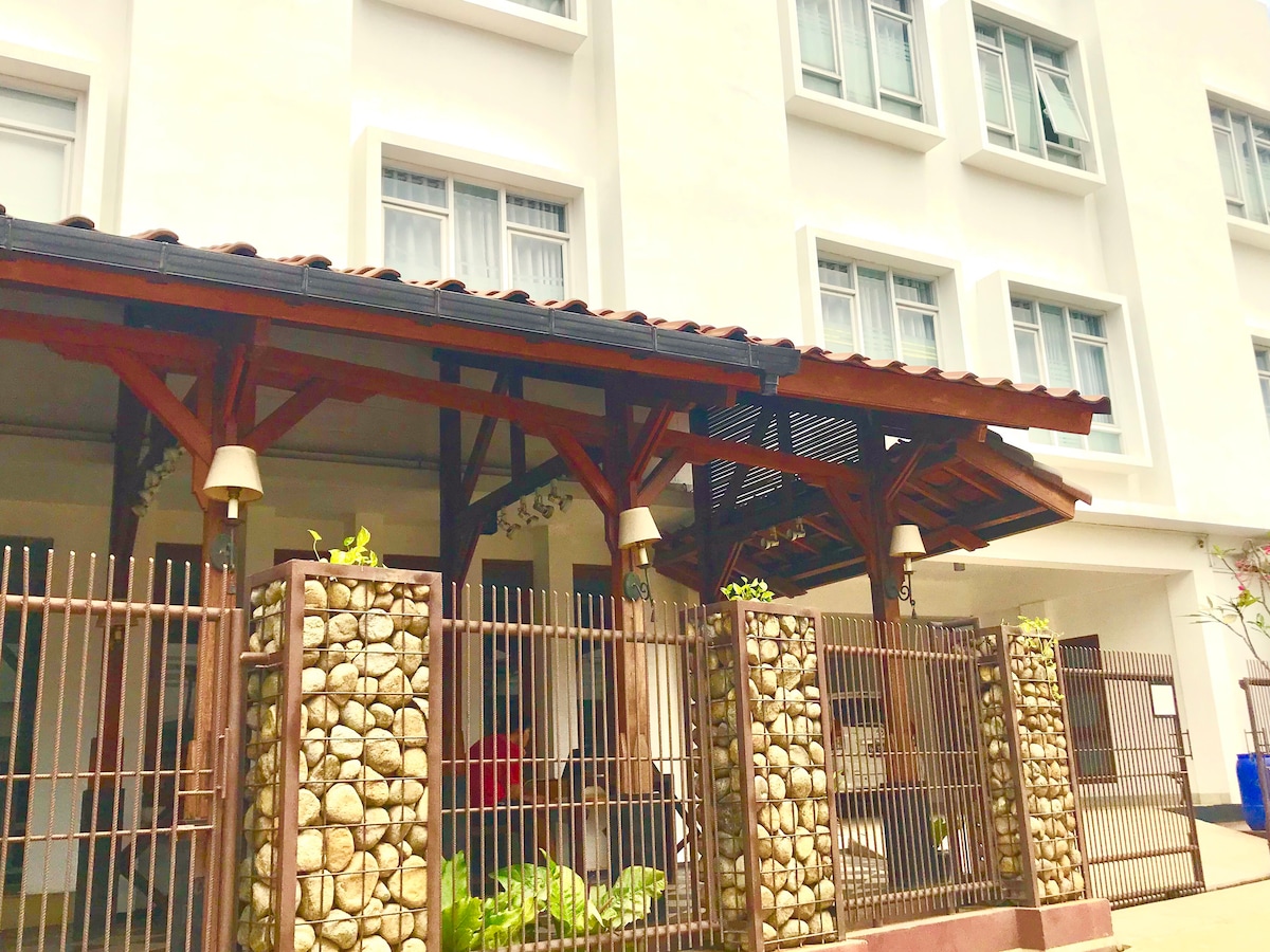 Welcome to your home away from home! This 1-bedroom guest suite with kitchen is perfect for travelers seeking comfort and convenience. This suite is located in serene neighborhood, on the 2nd floor of the long-running Japanese restaurant. Potable water in a jug, local coffee and jasmine tea are free for you! 13 minutes walk to local train station 10 minutes to airport train station, intercity train station and malls. 5 minutes walk to art & cultural center Taman Ismail Marzuki.