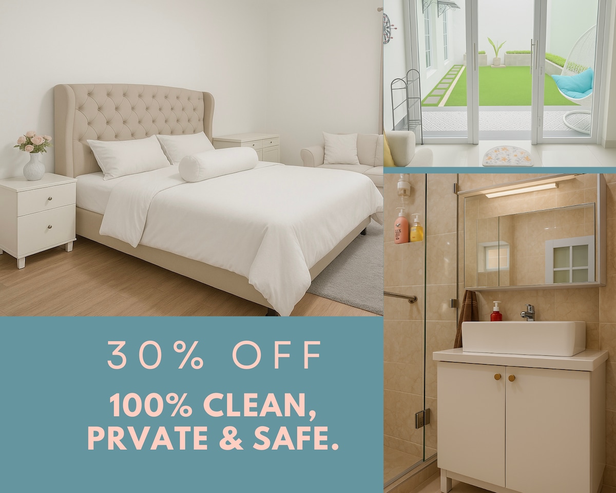 ✨ 2 Bedroom • 1 Bathroom ✨ All 2BR units come in the same standard size — 50 sqm. No bigger, no smaller. We maximize space by a tatami-style bed (queen size) in living room, allow up to 6 pax; by designing the interior for more beds not by adding extra meters. Since hotels not always fit for families, this unit allows the whole family to stay together with better value. For better understanding please refer to our 2D layout (in Living Room photos) so expectations are aligned from the start.