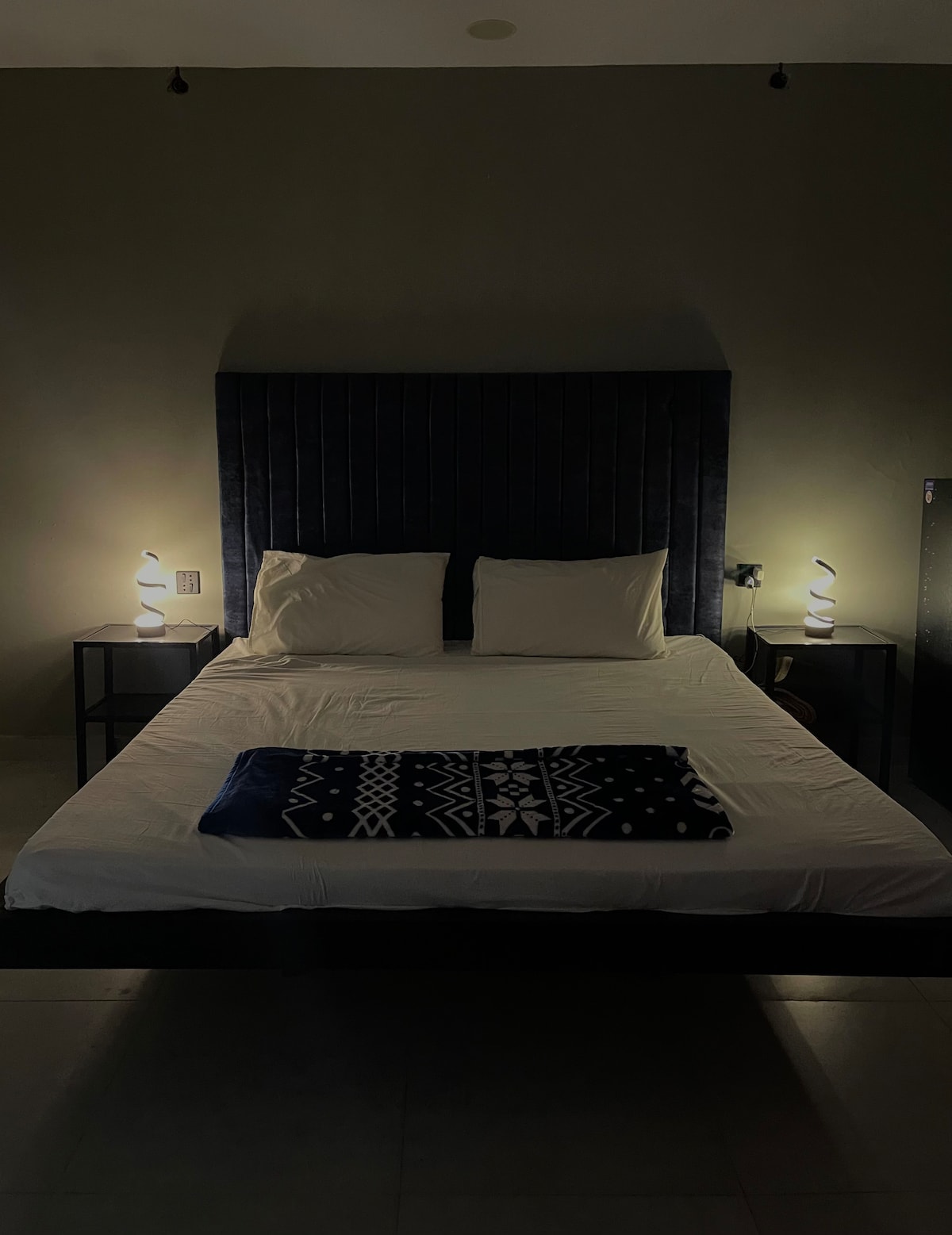 Floating bed, starlit ceiling & elevator access — Multan’s most aesthetic 1-bed stay. Escape Aura – Luxury Stay in Buch Villas, Multan Experience Multan’s first aesthetic apartment with a starlit ceiling, floating bed, and elegant dark-light theme. Enjoy full privacy with self check-in & check-out. Located in Buch Villas, just steps away from Imtiaz Mega Mart, Universal Cinema, and Buch International Hospital. Family & verified guests only. No unmarried couples / no parties.