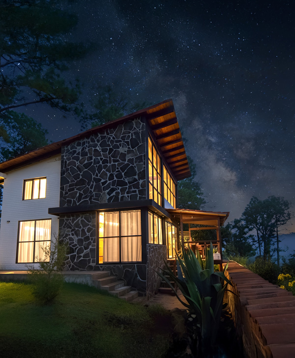 Esta parte del bosque se caracteriza por sus grandes árboles, aves, ardillas, conejos y noches estrelladas que, en compañía de fogatas y buena vibra, lo hacen un gran lugar para conectar contigo mismo. Podrás disfrutar de una cabaña de piedra al estilo toscano, con todas las comodidades que la vuelven muy acogedora. Seguridad 24hrs. Perfecta para planes románticos, de descanso o para quien busca trabajar fuera de la rutina. A 15 minutos del centro de Tapalpa.
