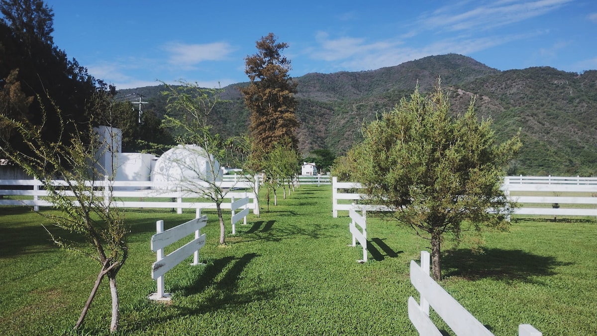 ¡Disfruta una experiencia única en su tipo en Aguascalientes! Duerme bajo una noche estrellada con una vista insuperable a la presa y al pueblo mágico de San José de Gracia, sumérgete en la naturaleza circundante sin renunciar a las comodidades. Los domos son autosustentables y con una ubicación inmejorable: en coche a solo 19 min. (13km) de San José de Gracia y su Cristo Roto, unos 22 min. (15km) de Boca de Túnel con sus tirolesas y puentes colgantes y unos 42 min. (47 km) de Aguascalientes.