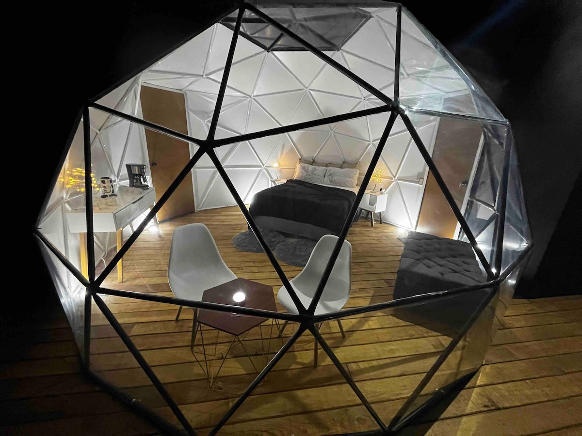 We have 3 more https://abnb.me/dobQuKhzUHb https://abnb.me/J2QI6zIzUHb https://abnb.me/4CukDRDzUHb This dome is a shell structure built from metal rods in this case, that allow the dome to withstand very heavy loads and high winds despite its lightweight structure. Most of the time when you think of glamping being off-grid comes with it. While you're not exactly off-grid here, as you do have electricity and wifi but you are off the beaten path enough to catch the sunset&sunrise from your dome.