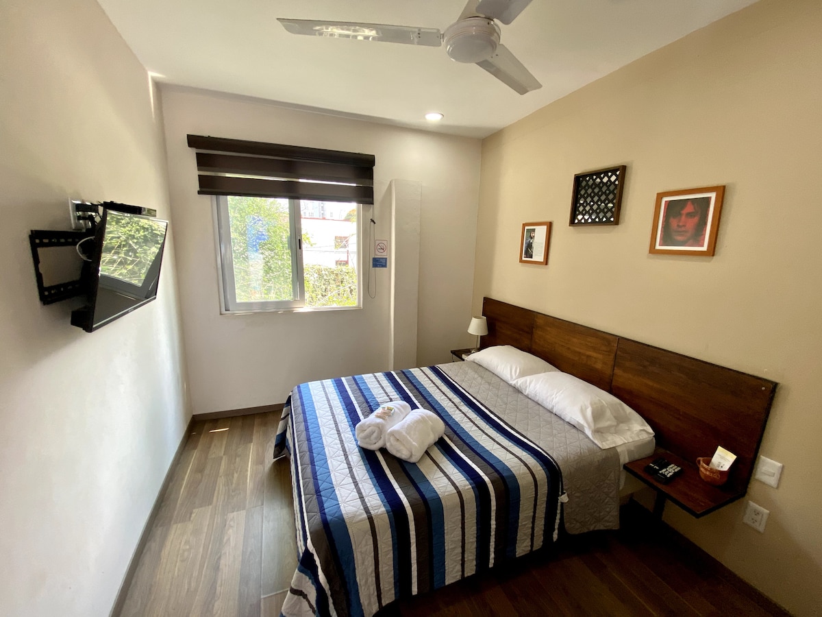 Warm and cozy room in the great big central patio. Located in the neighborhood of the Expiatorio Temple. Easy displacement to cultural and gastronomic places. Shared bathroom. TO TAKE INTO ACCOUNT: In case of planning to bring your pet, we accept only dogs and cats of small breeds (5/7 Kg. Maximum) and one pet per reservation, with an extra charge per night of $ 250 pesos. In addition to notifying, by this way, before your arrival. Thank you!