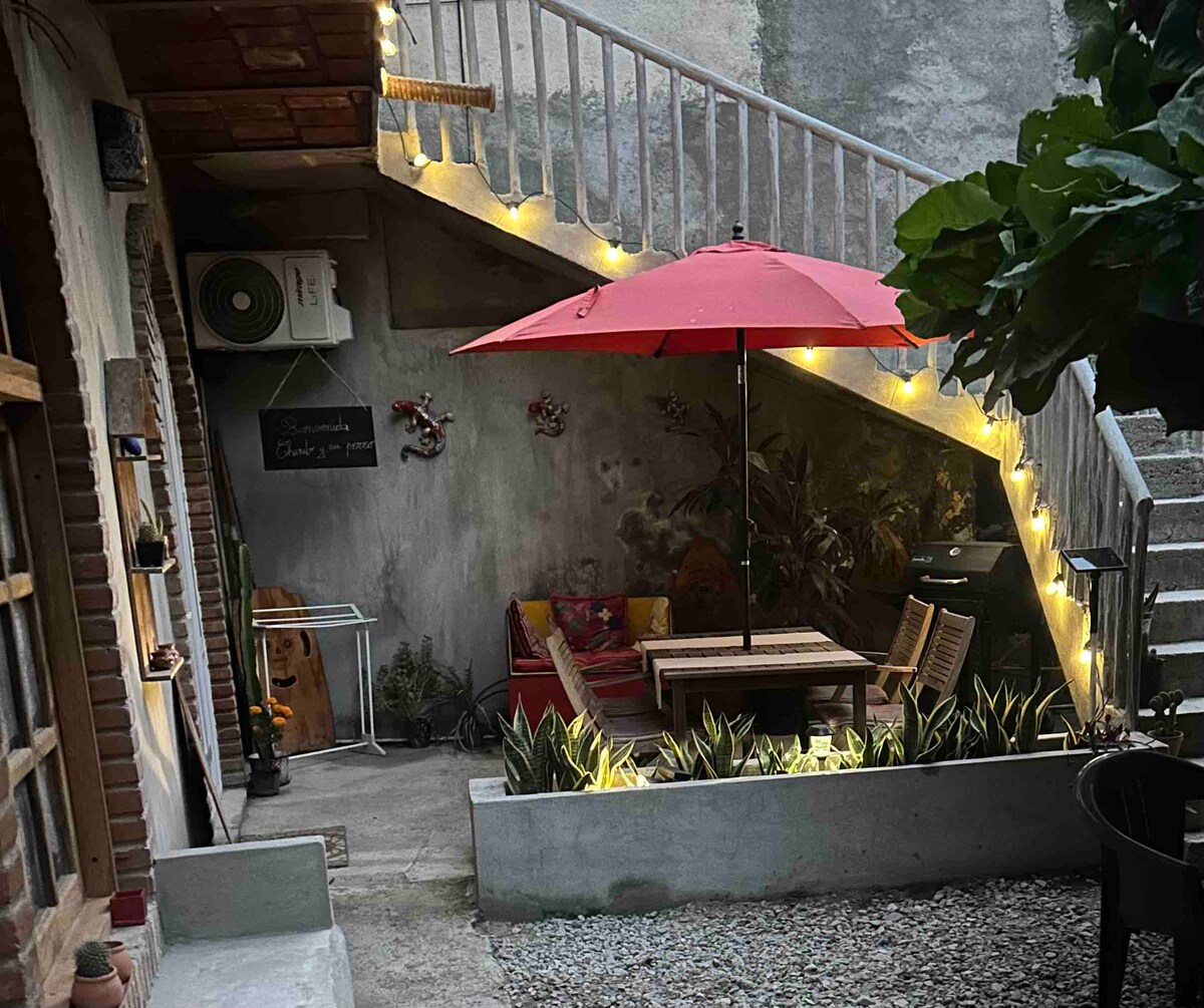 Disfruta de la comodidad de este "Estudio" tranquilo y céntrico. Ubicado en la parte trasera de mi casa con entrada independiente. Equipado con aire acondicionado, WiFi, Smart TV, además cuenta con estacionamiento cerrado y gratuito dentro de las instalaciones. Hay un patio grande y 2 terrazas compartidas en donde sí se permite fumar. La cama es tamaño matrimonial.