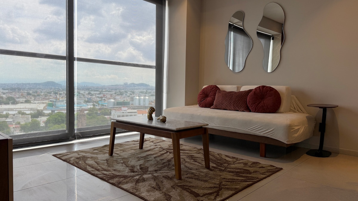 -22nd floor swimming pool -Beautiful gym with city views -Fully equipped for long stays -Parking available (at additional cost) - Housekeeping service: Once a week for reservation of +7 nights Whether traveling for work or leisure, you'll enjoy this modern studio in a brand-new luxury tower in the Providencia neighborhood, near the Midtown Jalisco shopping mall.