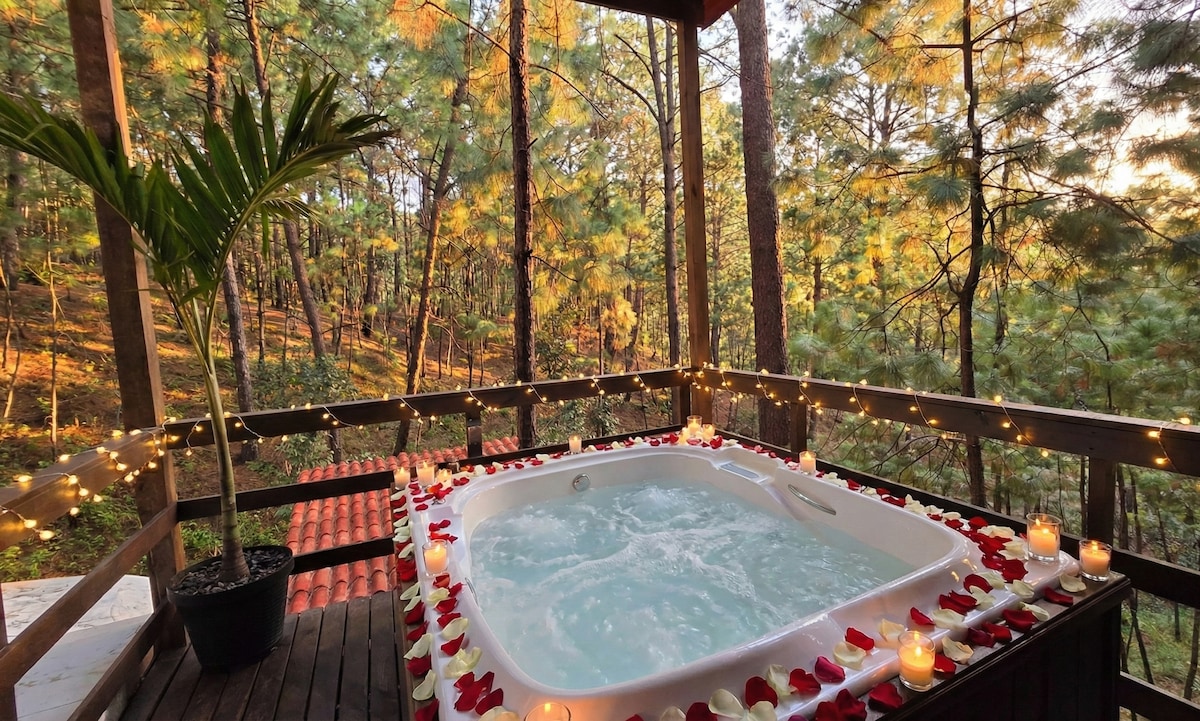 Relájate en este espacio tan tranquilo y elegante, Disfruta del encantador entorno de esta romántica Cabaña Prieta. Se encuentra ubicado a 5 km de la plaza principal, esta rodeada de enormes pinos, cuenta con acabados de lujo, Cocina equipada, Jacuzzi, Terraza con vista Panoramica, TV con sistema Dish. Todo lo necesario para que pases un agradable noche con tu pareja en la naturaleza.