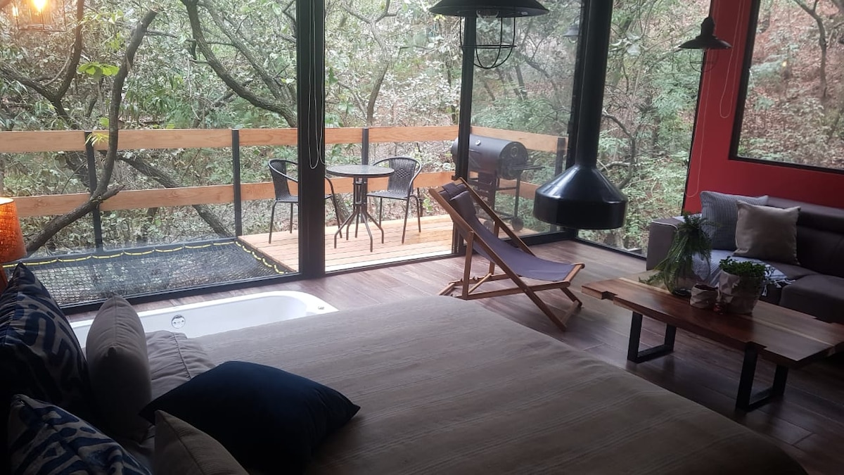 Disfruta de la magia que ofrece el bosque de Tapalpa. Vínculo total con la naturaleza, relájate en la cabaña ubicada arriba de los pinos santuario de relax para hacer pausa y no pensar en la ciudad.... Lo mejor de la terraza: Las puestas de sol, cenas al aire libre, equipo completo para una buena carne asada, vista completa al bosque desde la altura. Caminando, corriendo, en bicicleta, recorrer el bosque es una experiencia única. •••La casa del árbol que quizás soñaste en tu infancia.••••