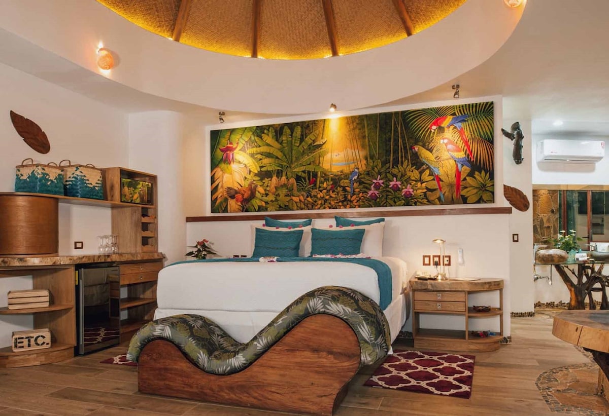 Our tree house is literally nestled in a beautiful fig tree in the jungle steps from an incredible beach. We invite you to connect with nature from comfort and beauty. The space also has little waterfalls that will awaken your senses with natural swimming ponds and a lush jungle around.